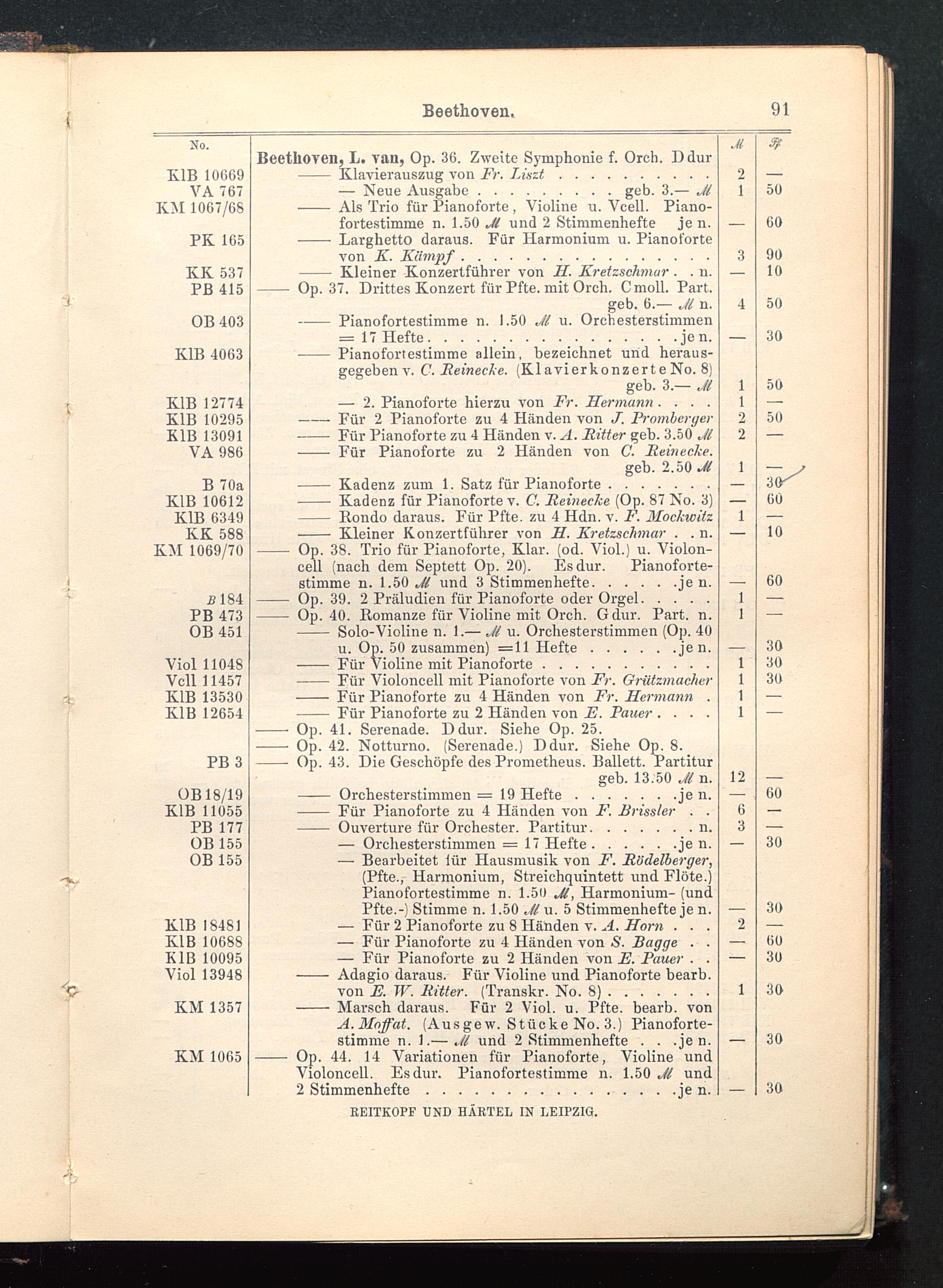 Verzeichnis des Musikalien-Verlages von Breitkopf & Härtel in Leipzig vollständig bis 1902