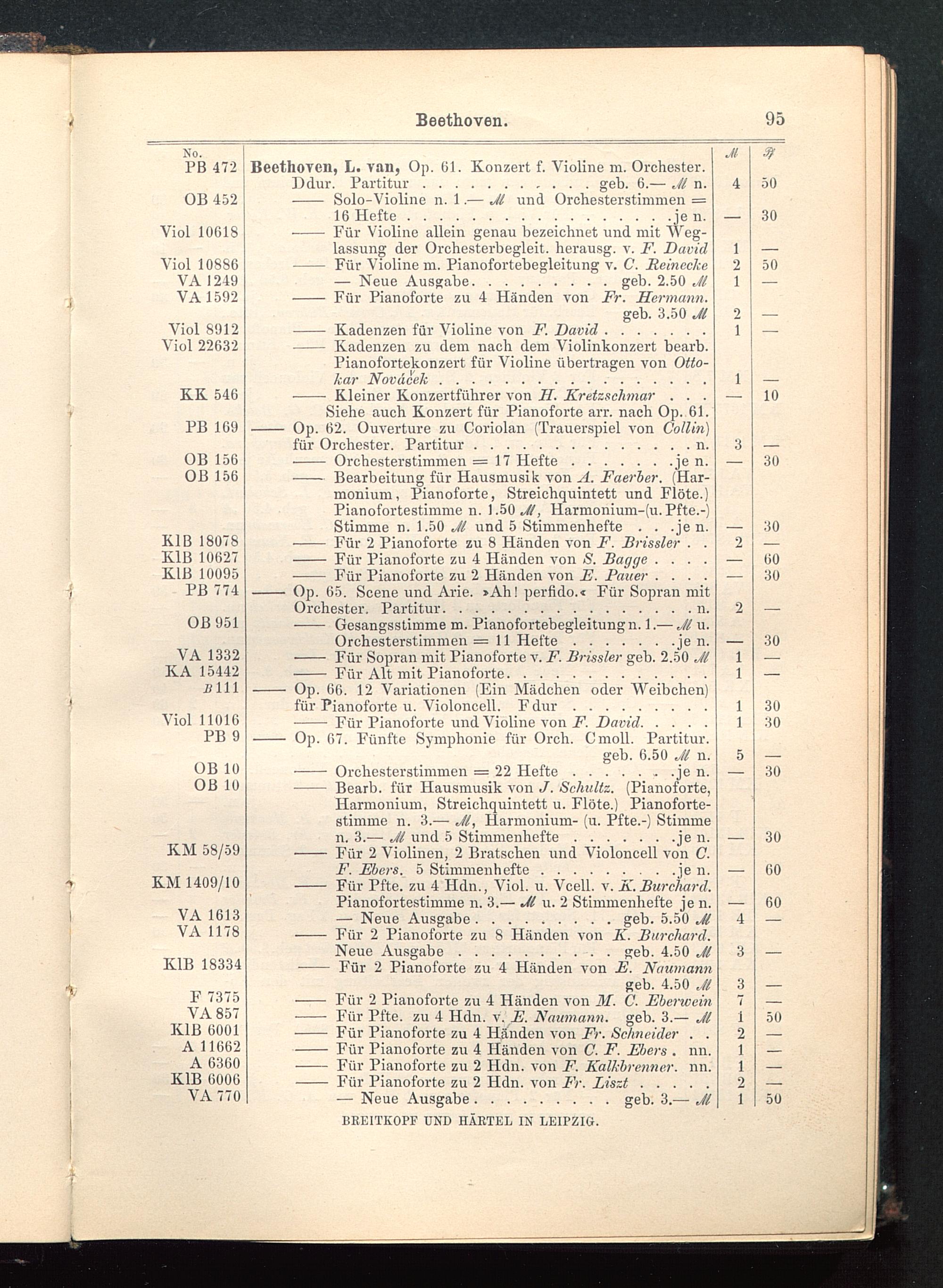 Verzeichnis des Musikalien-Verlages von Breitkopf & Härtel in Leipzig vollständig bis 1902