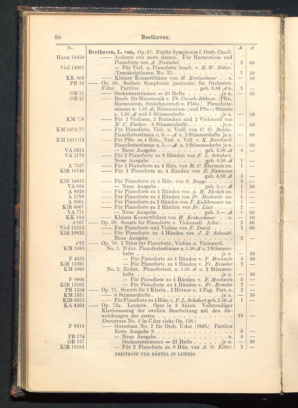 Verzeichnis des Musikalien-Verlages von Breitkopf & Härtel in Leipzig vollständig bis 1902