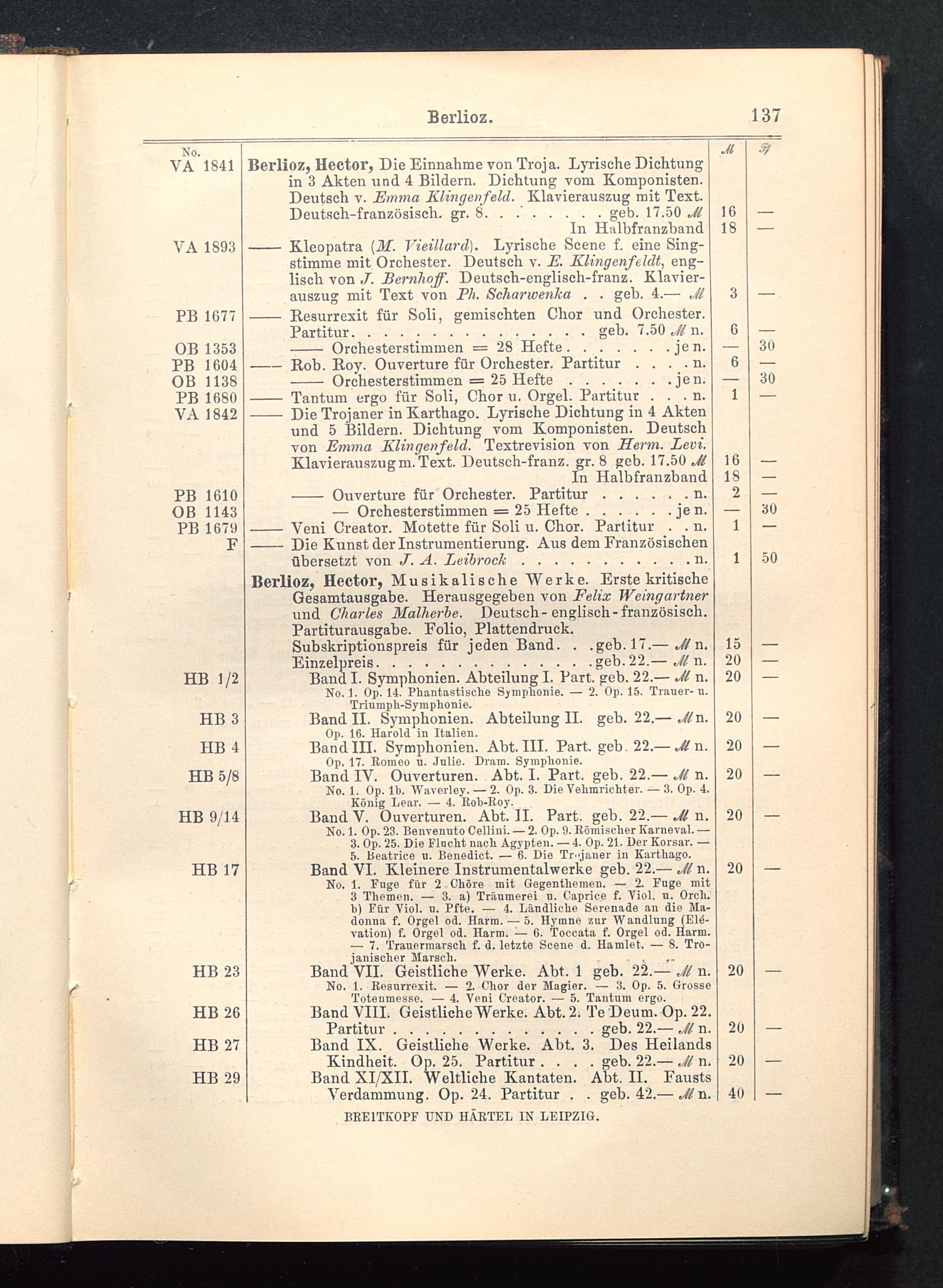 Verzeichnis des Musikalien-Verlages von Breitkopf & Härtel in Leipzig vollständig bis 1902