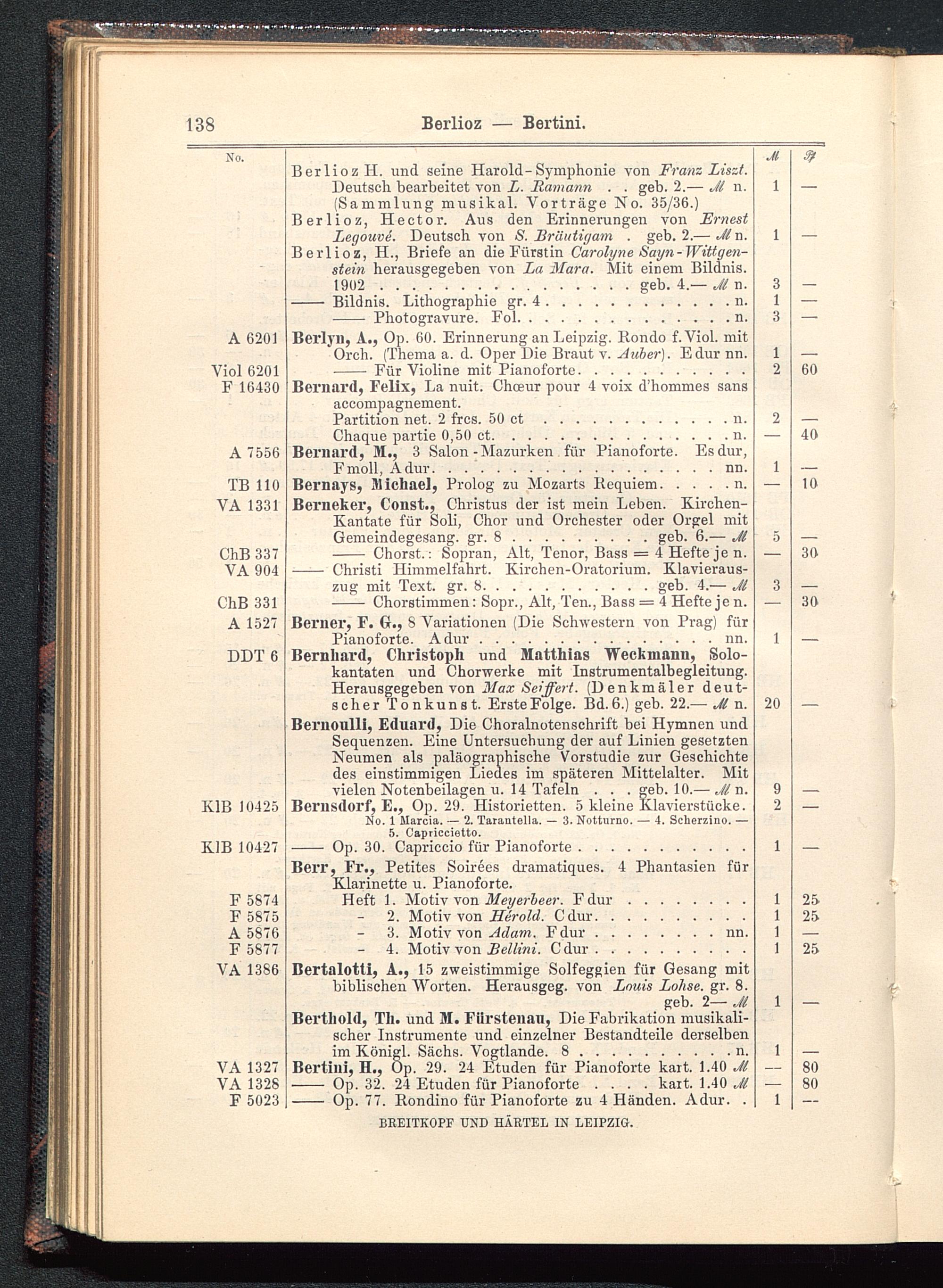 Verzeichnis des Musikalien-Verlages von Breitkopf & Härtel in Leipzig vollständig bis 1902