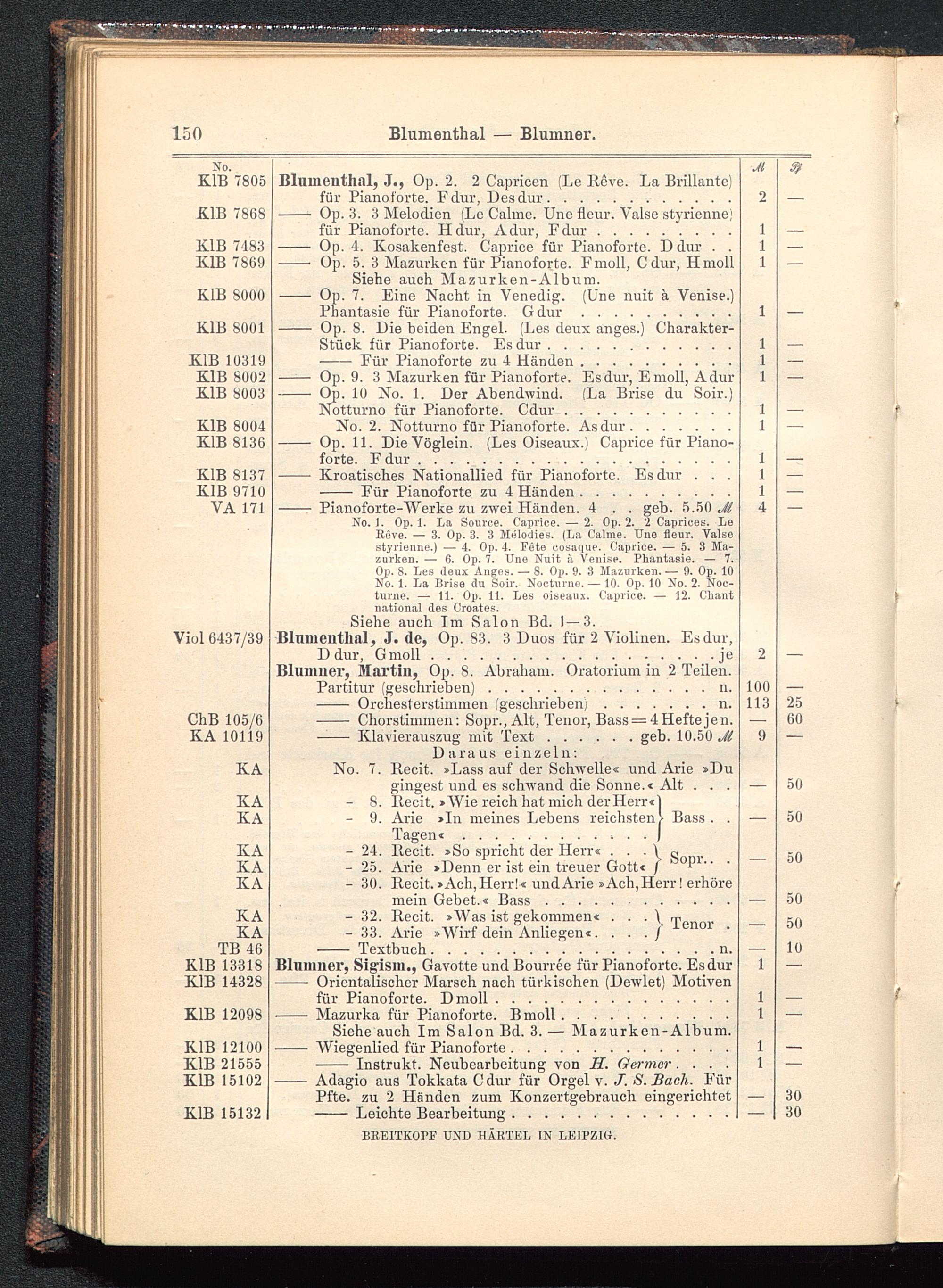 Verzeichnis des Musikalien-Verlages von Breitkopf & Härtel in Leipzig vollständig bis 1902