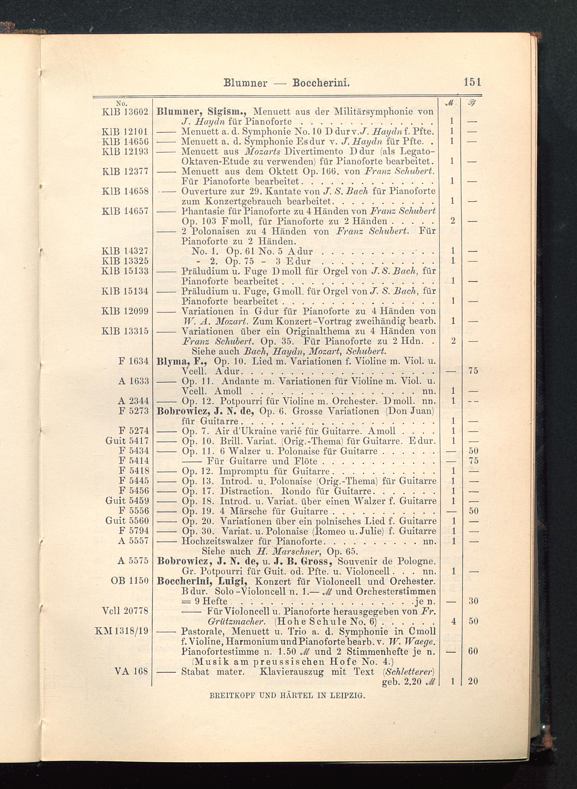 Verzeichnis des Musikalien-Verlages von Breitkopf & Härtel in Leipzig vollständig bis 1902