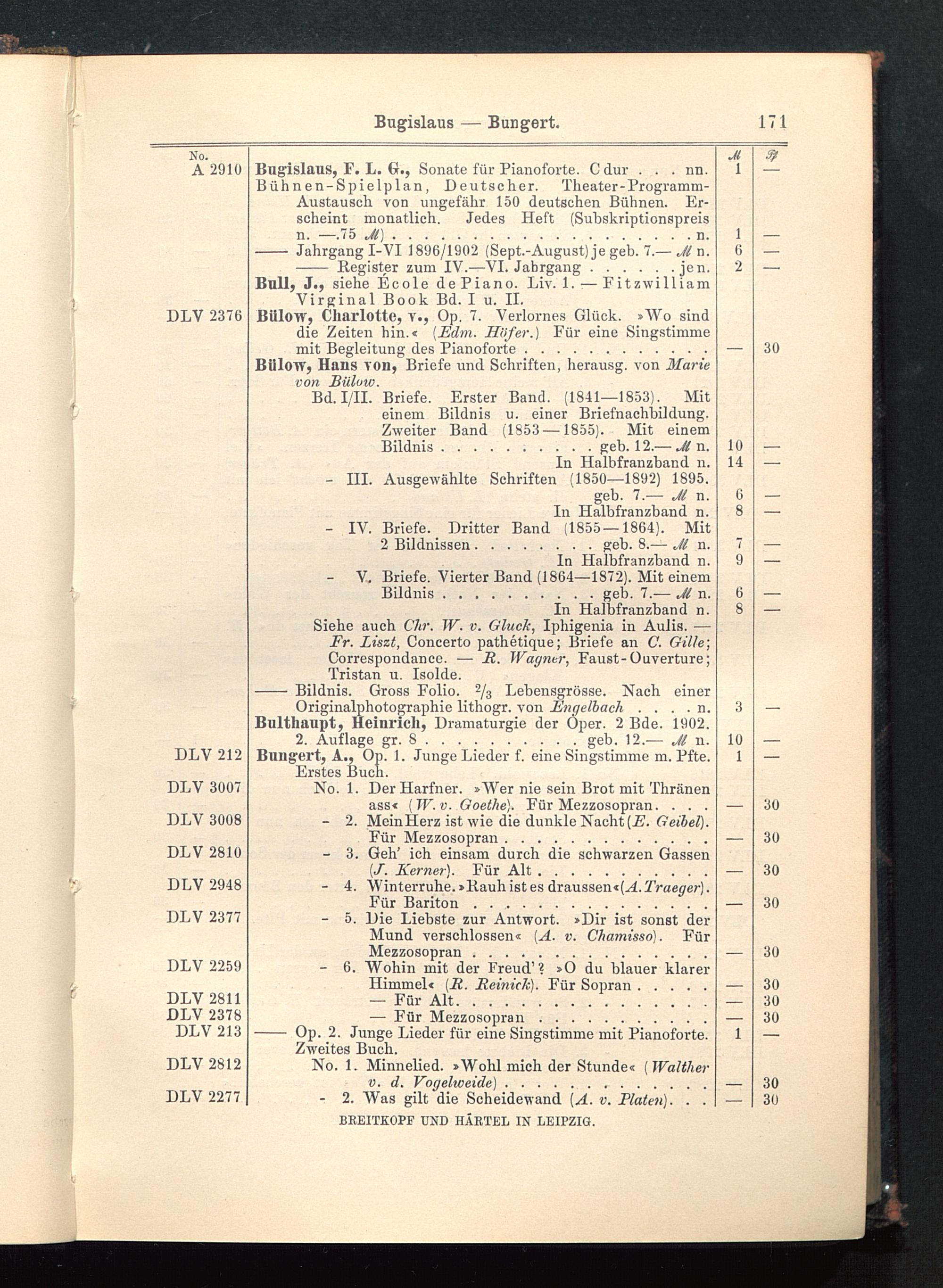 Verzeichnis des Musikalien-Verlages von Breitkopf & Härtel in Leipzig vollständig bis 1902