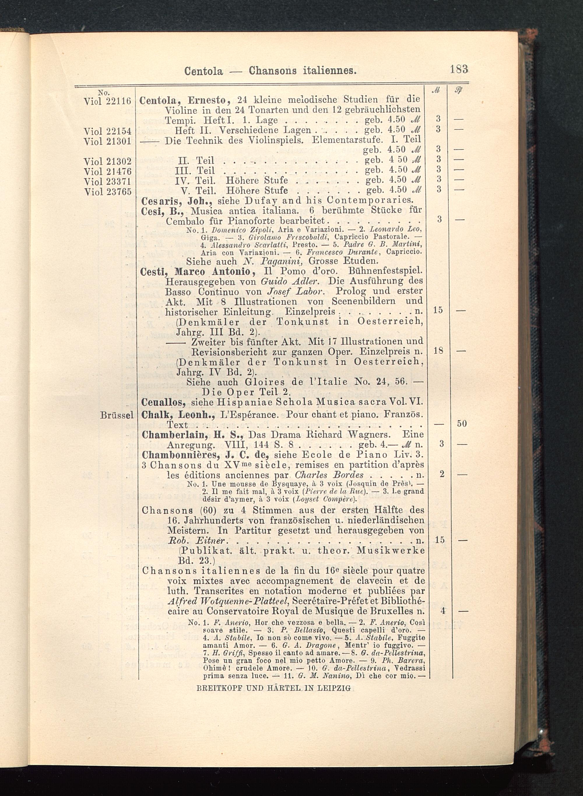 Verzeichnis des Musikalien-Verlages von Breitkopf & Härtel in Leipzig vollständig bis 1902