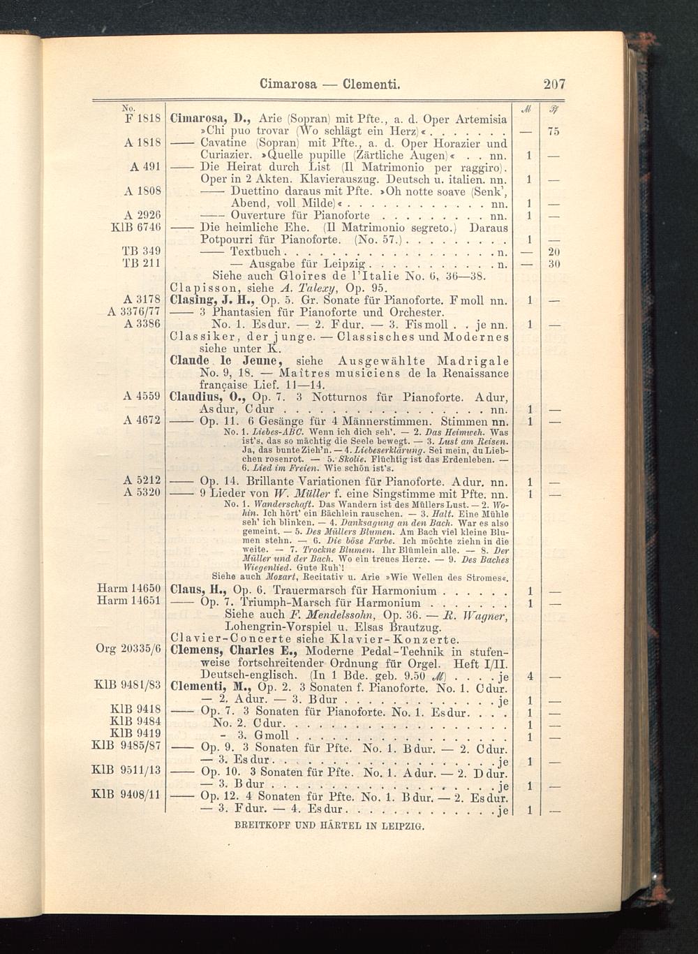 Verzeichnis des Musikalien-Verlages von Breitkopf & Härtel in Leipzig vollständig bis 1902