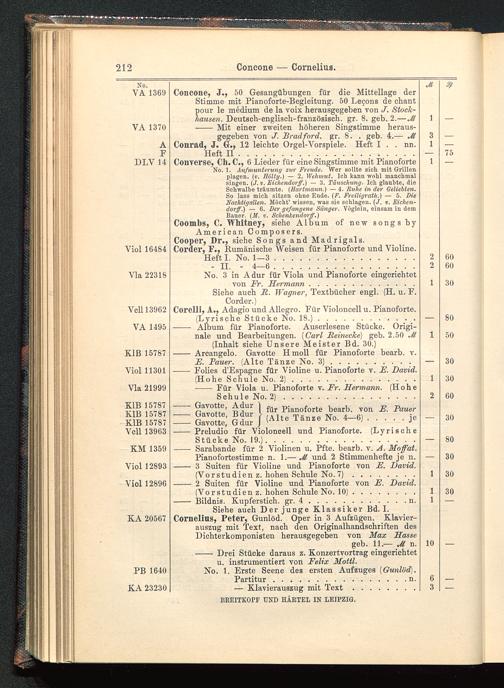 Verzeichnis des Musikalien-Verlages von Breitkopf & Härtel in Leipzig vollständig bis 1902