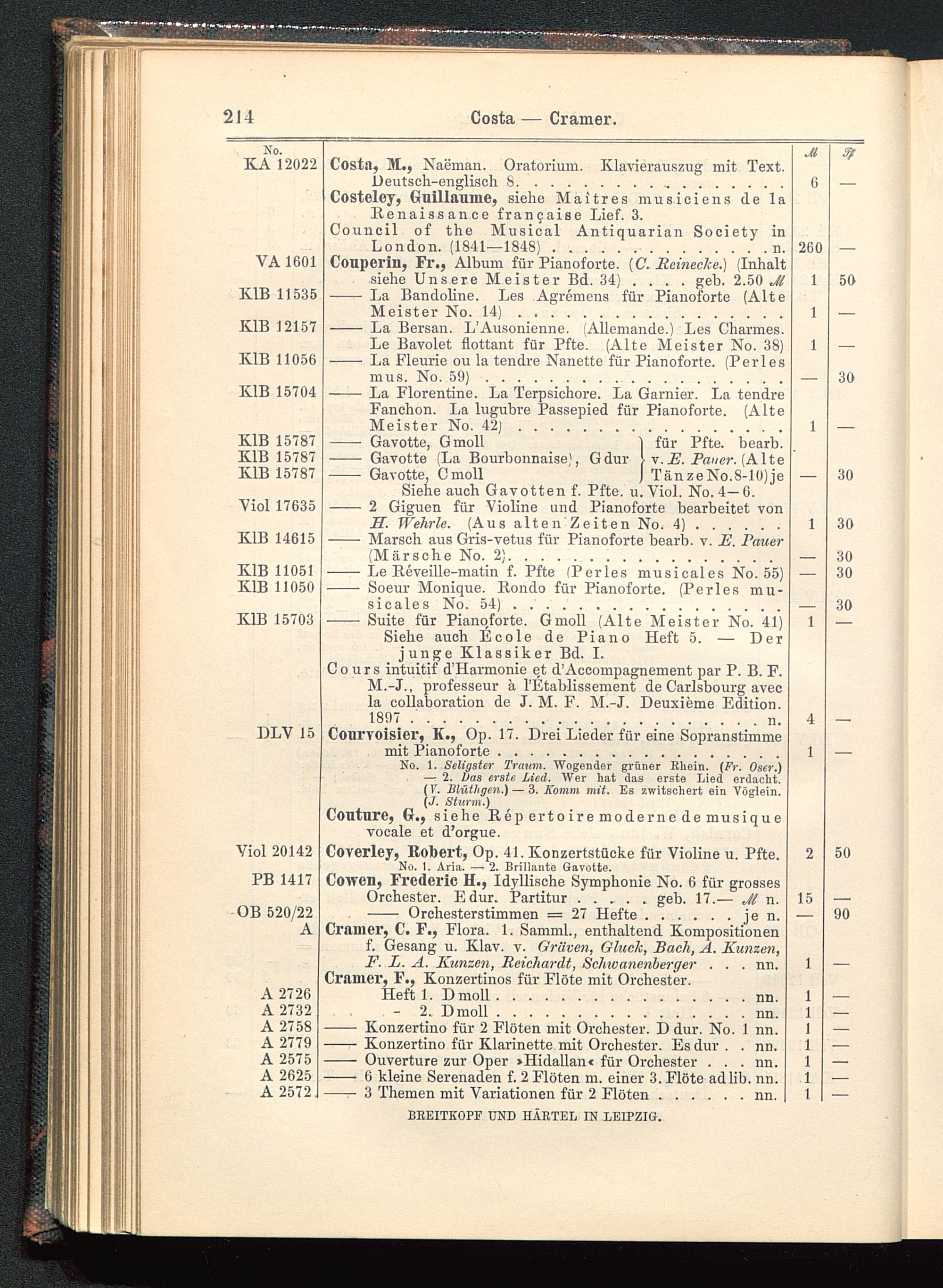 Verzeichnis des Musikalien-Verlages von Breitkopf & Härtel in Leipzig vollständig bis 1902