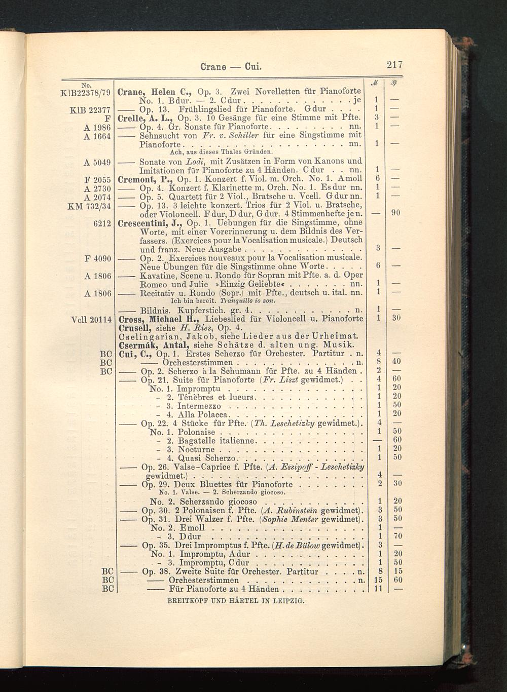 Verzeichnis des Musikalien-Verlages von Breitkopf & Härtel in Leipzig vollständig bis 1902