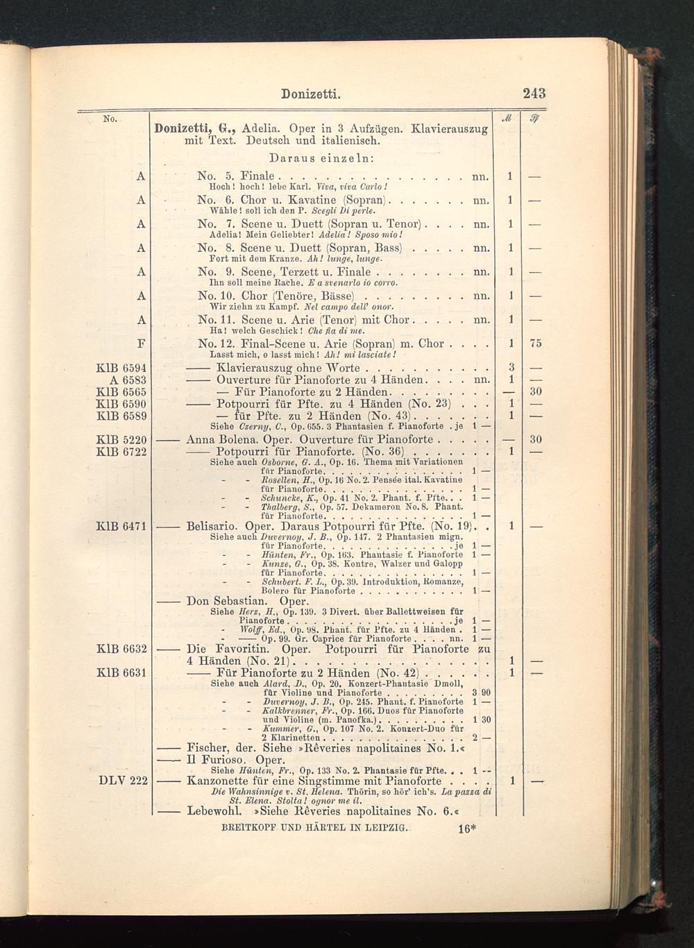 Verzeichnis des Musikalien-Verlages von Breitkopf & Härtel in Leipzig vollständig bis 1902