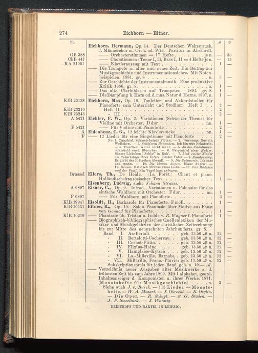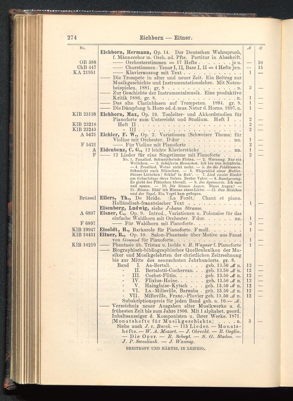 Verzeichnis des Musikalien-Verlages von Breitkopf & Härtel in Leipzig vollständig bis 1902