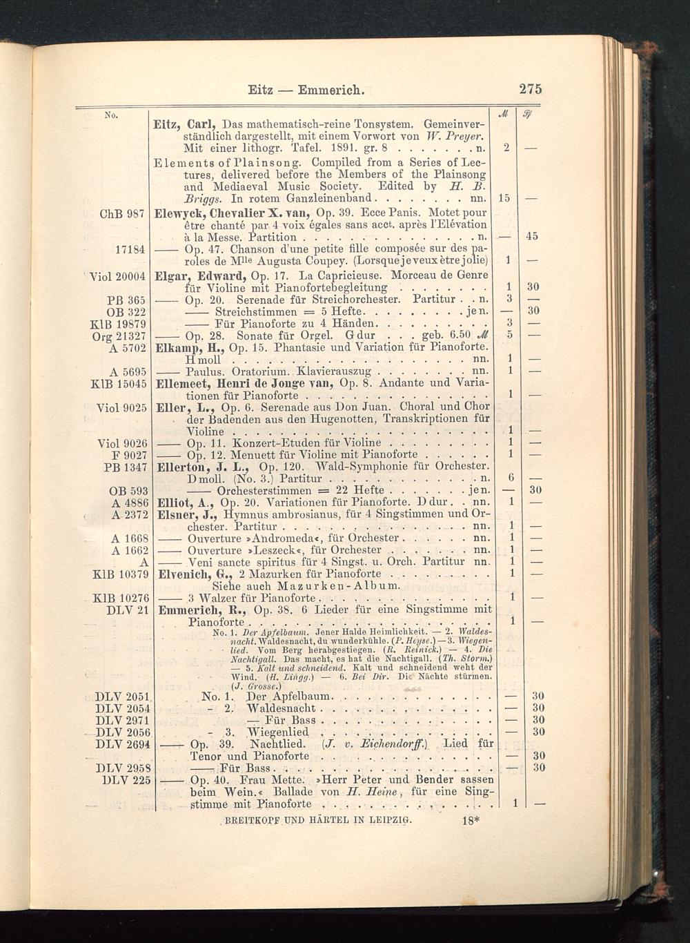 Verzeichnis des Musikalien-Verlages von Breitkopf & Härtel in Leipzig vollständig bis 1902