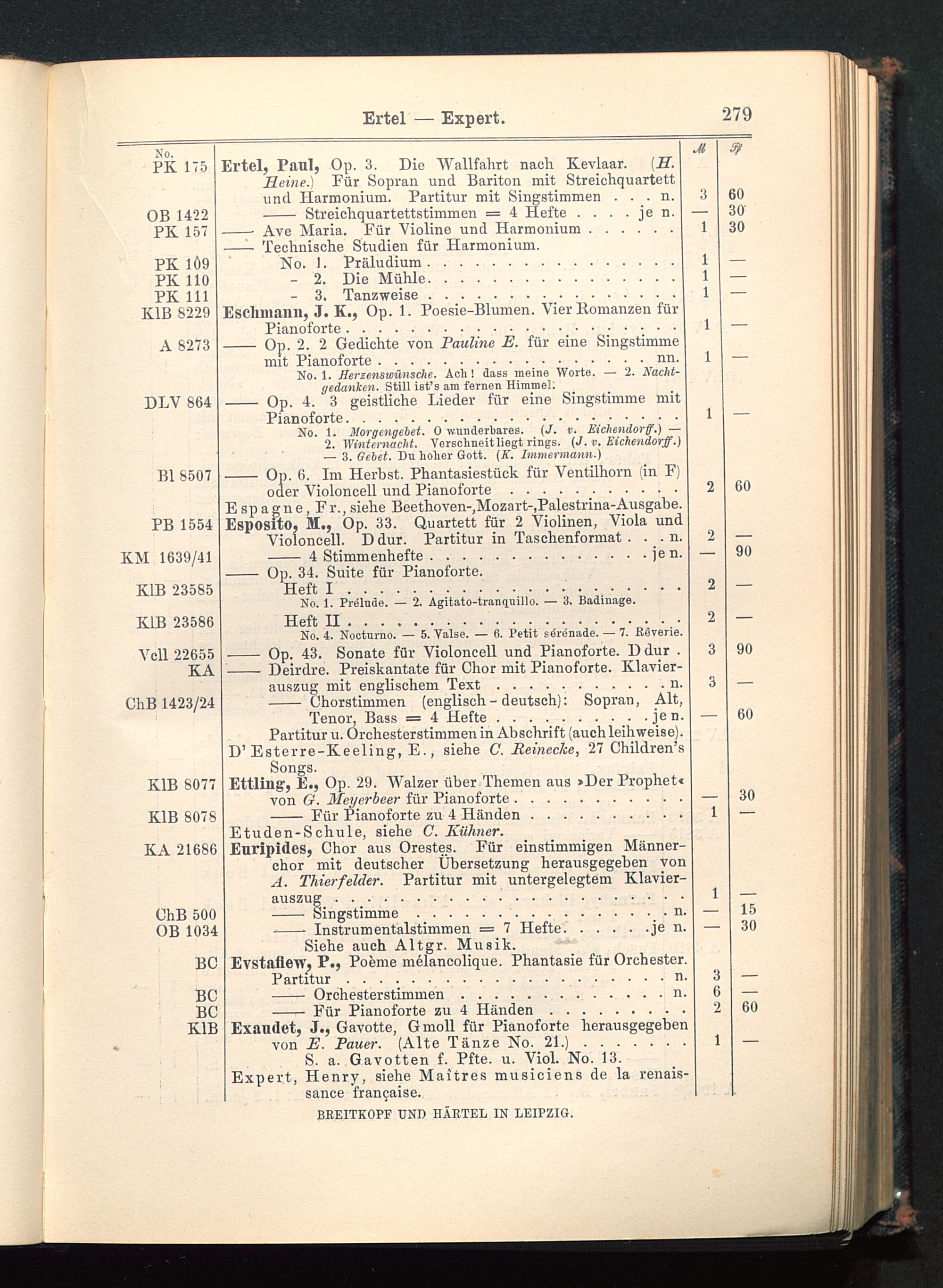 Verzeichnis des Musikalien-Verlages von Breitkopf & Härtel in Leipzig vollständig bis 1902