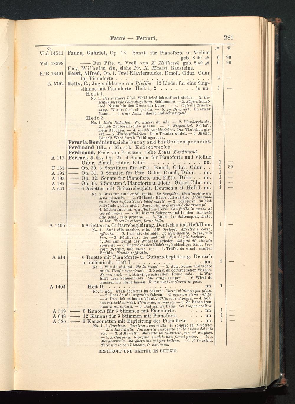 Verzeichnis des Musikalien-Verlages von Breitkopf & Härtel in Leipzig vollständig bis 1902