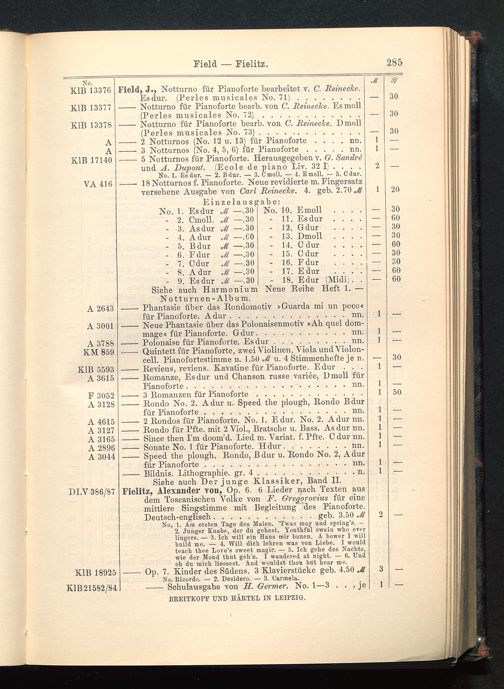 Verzeichnis des Musikalien-Verlages von Breitkopf & Härtel in Leipzig vollständig bis 1902