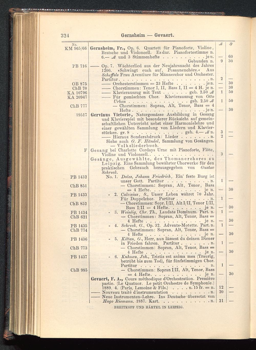 Verzeichnis des Musikalien-Verlages von Breitkopf & Härtel in Leipzig vollständig bis 1902