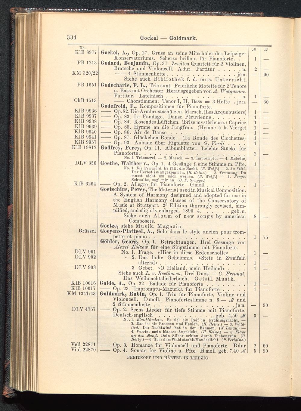 Verzeichnis des Musikalien-Verlages von Breitkopf & Härtel in Leipzig vollständig bis 1902