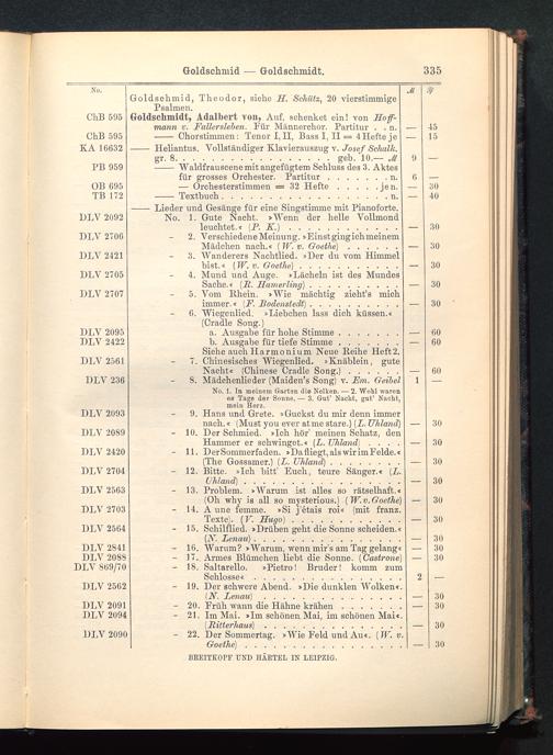 Verzeichnis des Musikalien-Verlages von Breitkopf & Härtel in Leipzig vollständig bis 1902