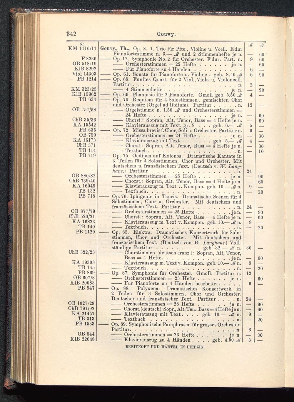 Verzeichnis des Musikalien-Verlages von Breitkopf & Härtel in Leipzig vollständig bis 1902