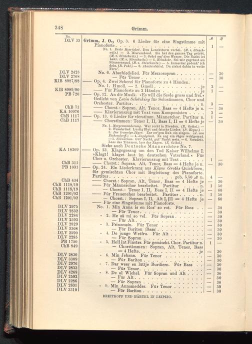 Verzeichnis des Musikalien-Verlages von Breitkopf & Härtel in Leipzig vollständig bis 1902