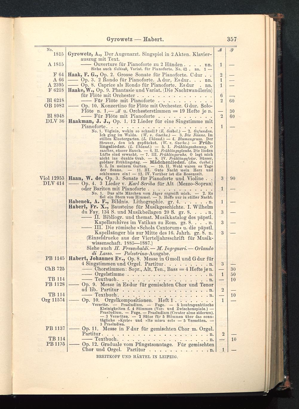 Verzeichnis des Musikalien-Verlages von Breitkopf & Härtel in Leipzig vollständig bis 1902