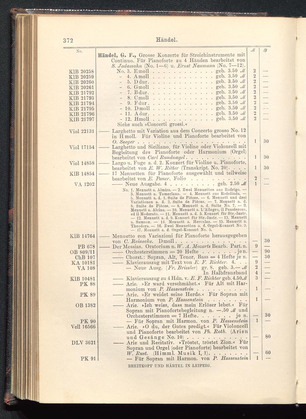 Verzeichnis des Musikalien-Verlages von Breitkopf & Härtel in Leipzig vollständig bis 1902