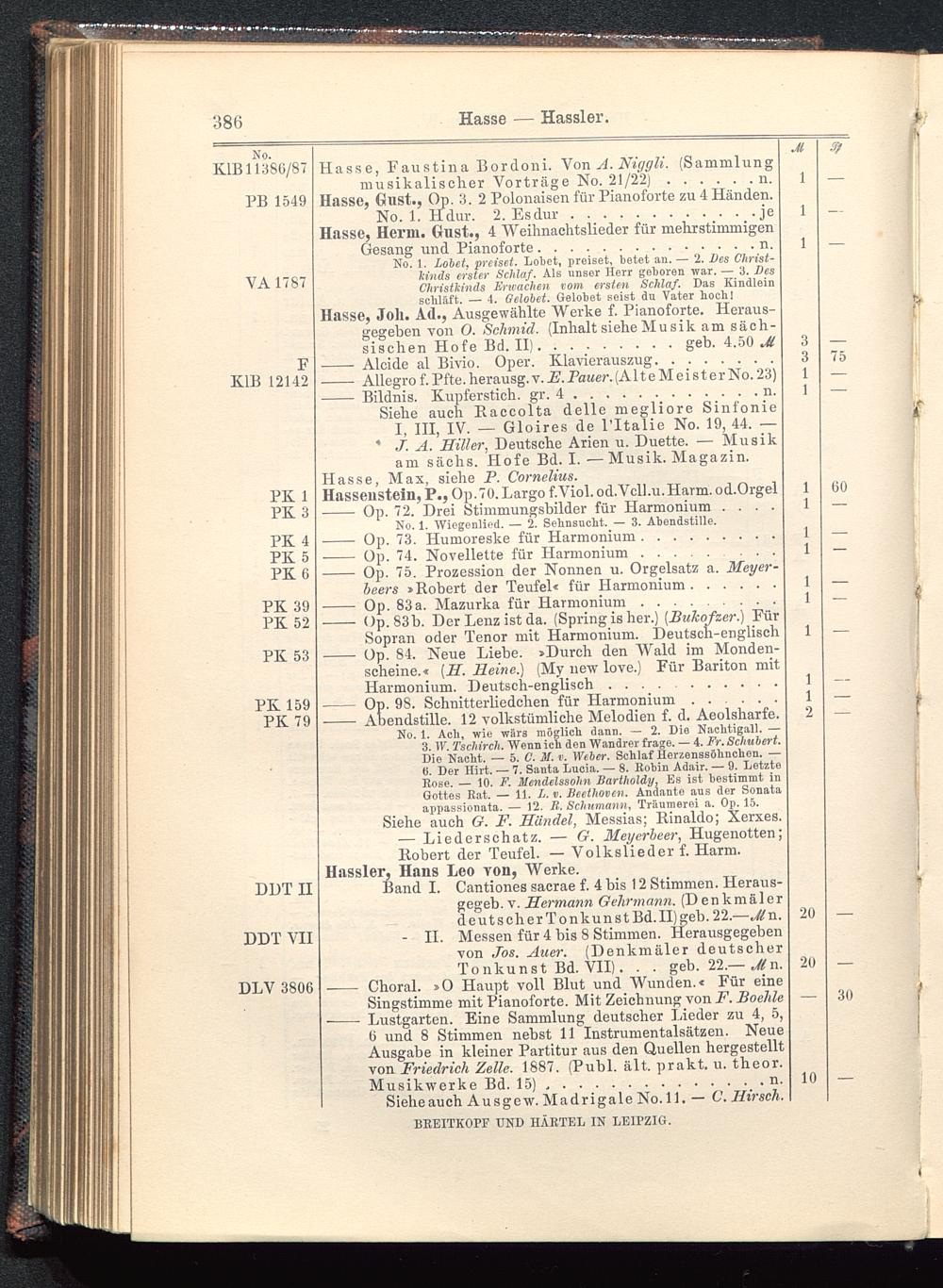 Verzeichnis des Musikalien-Verlages von Breitkopf & Härtel in Leipzig vollständig bis 1902