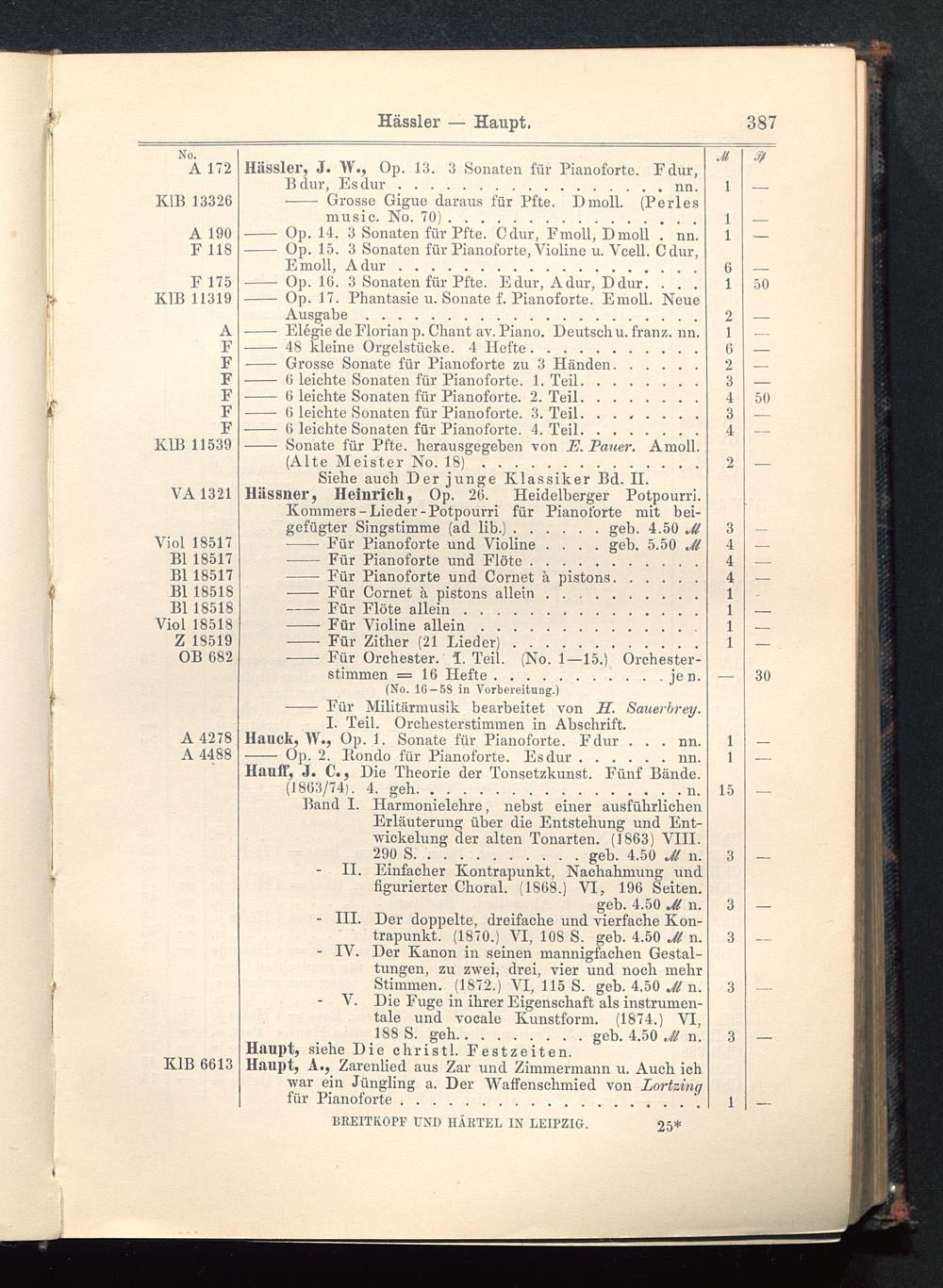 Verzeichnis des Musikalien-Verlages von Breitkopf & Härtel in Leipzig vollständig bis 1902