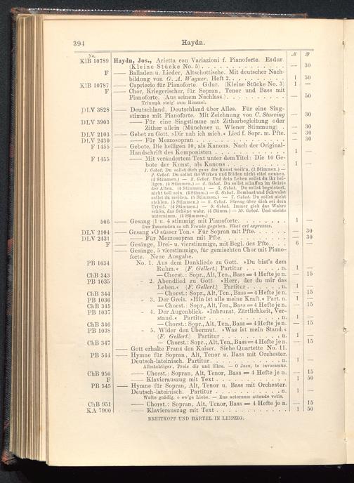 Verzeichnis des Musikalien-Verlages von Breitkopf & Härtel in Leipzig vollständig bis 1902