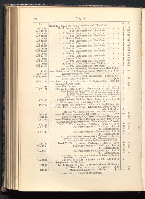 Verzeichnis des Musikalien-Verlages von Breitkopf & Härtel in Leipzig vollständig bis 1902