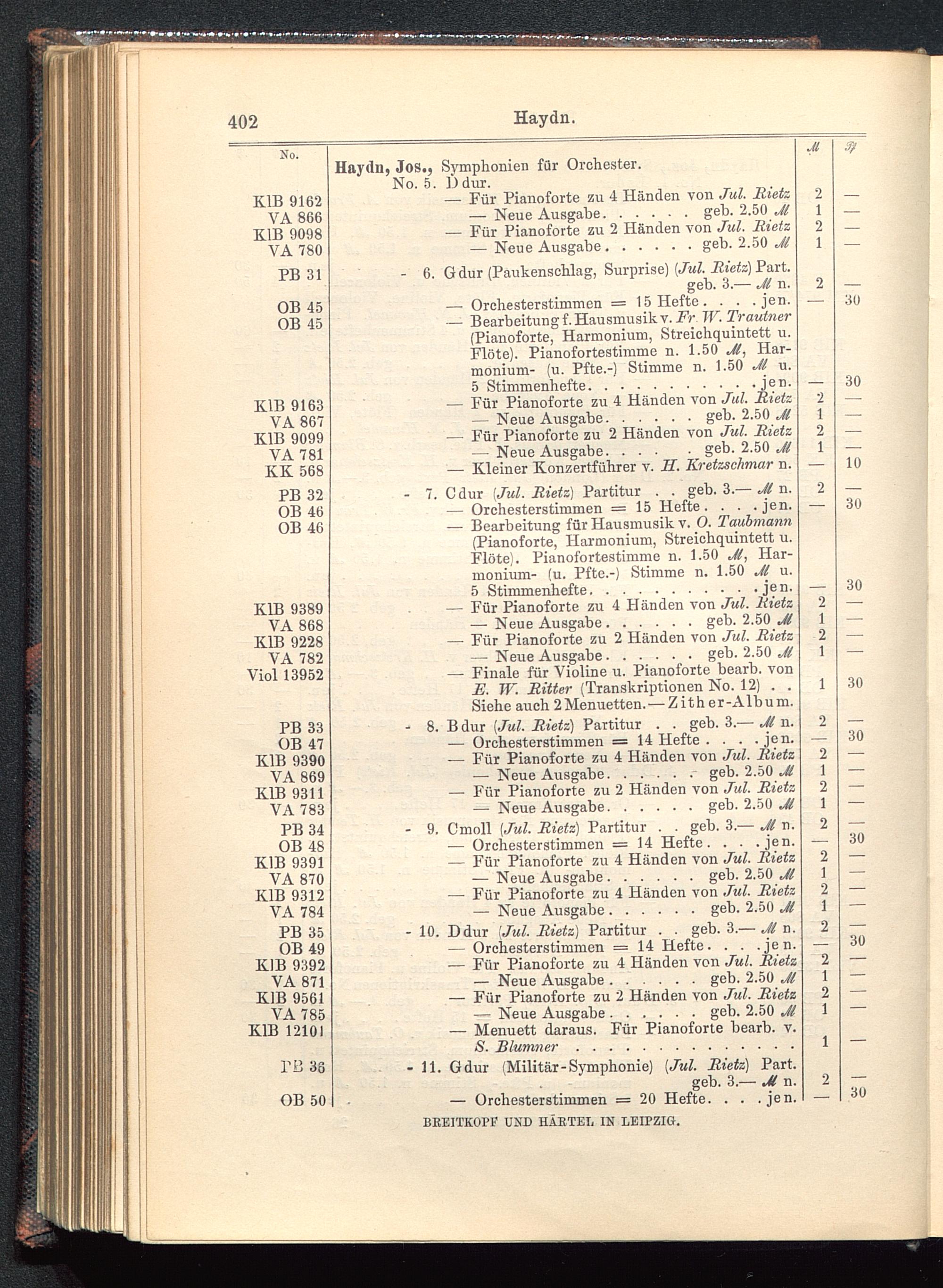 Verzeichnis des Musikalien-Verlages von Breitkopf & Härtel in Leipzig vollständig bis 1902