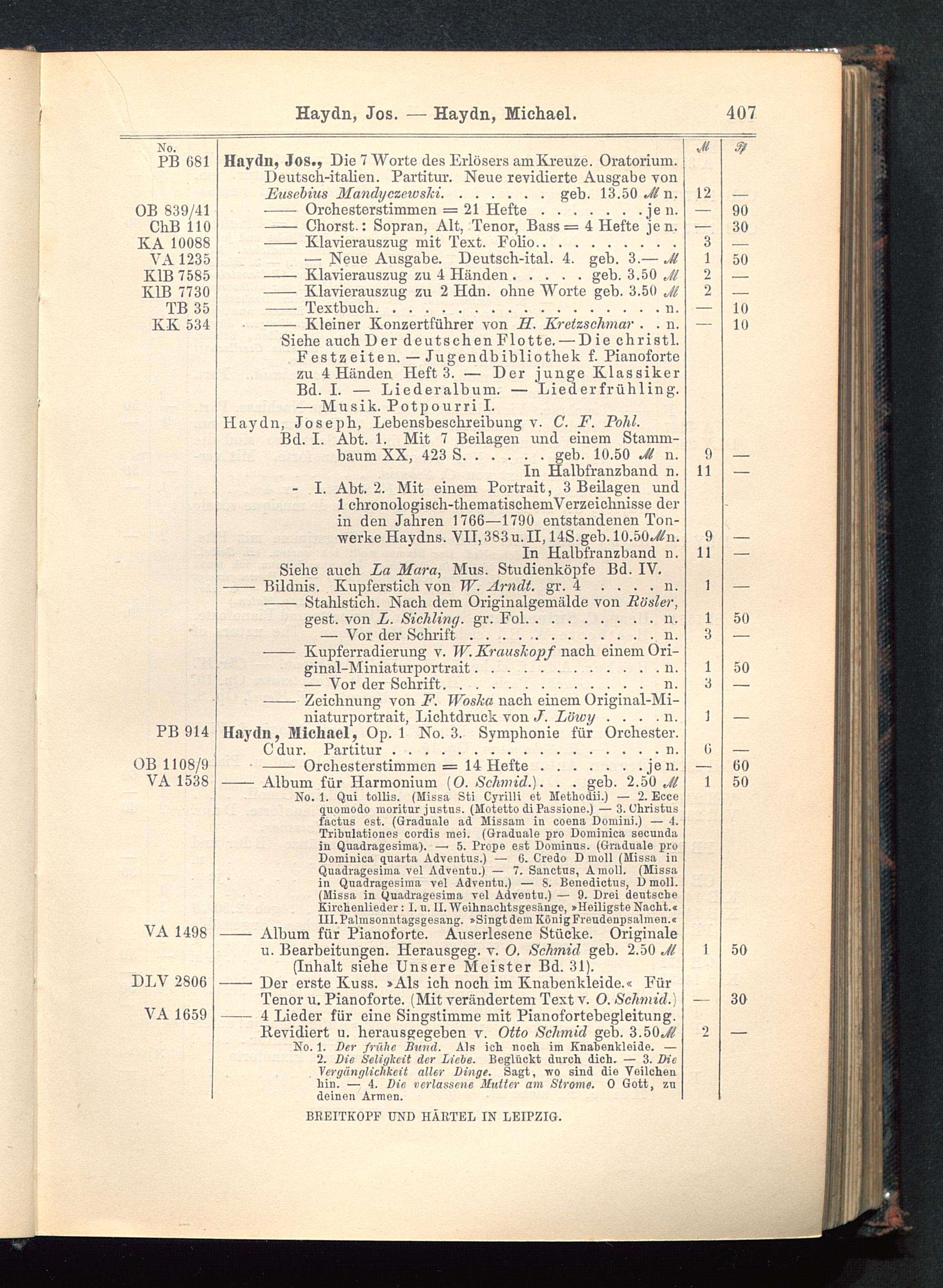 Verzeichnis des Musikalien-Verlages von Breitkopf & Härtel in Leipzig vollständig bis 1902