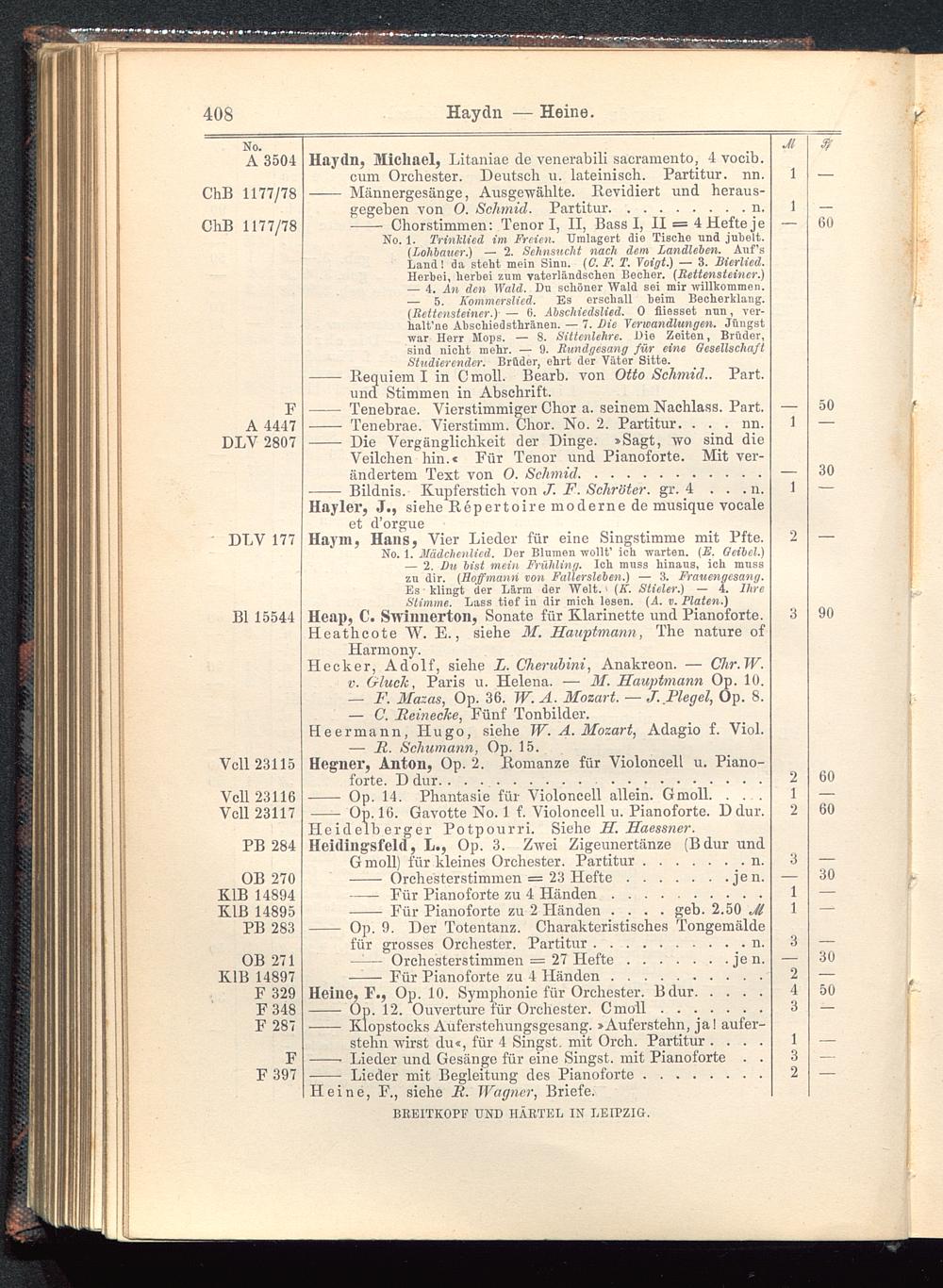 Verzeichnis des Musikalien-Verlages von Breitkopf & Härtel in Leipzig vollständig bis 1902