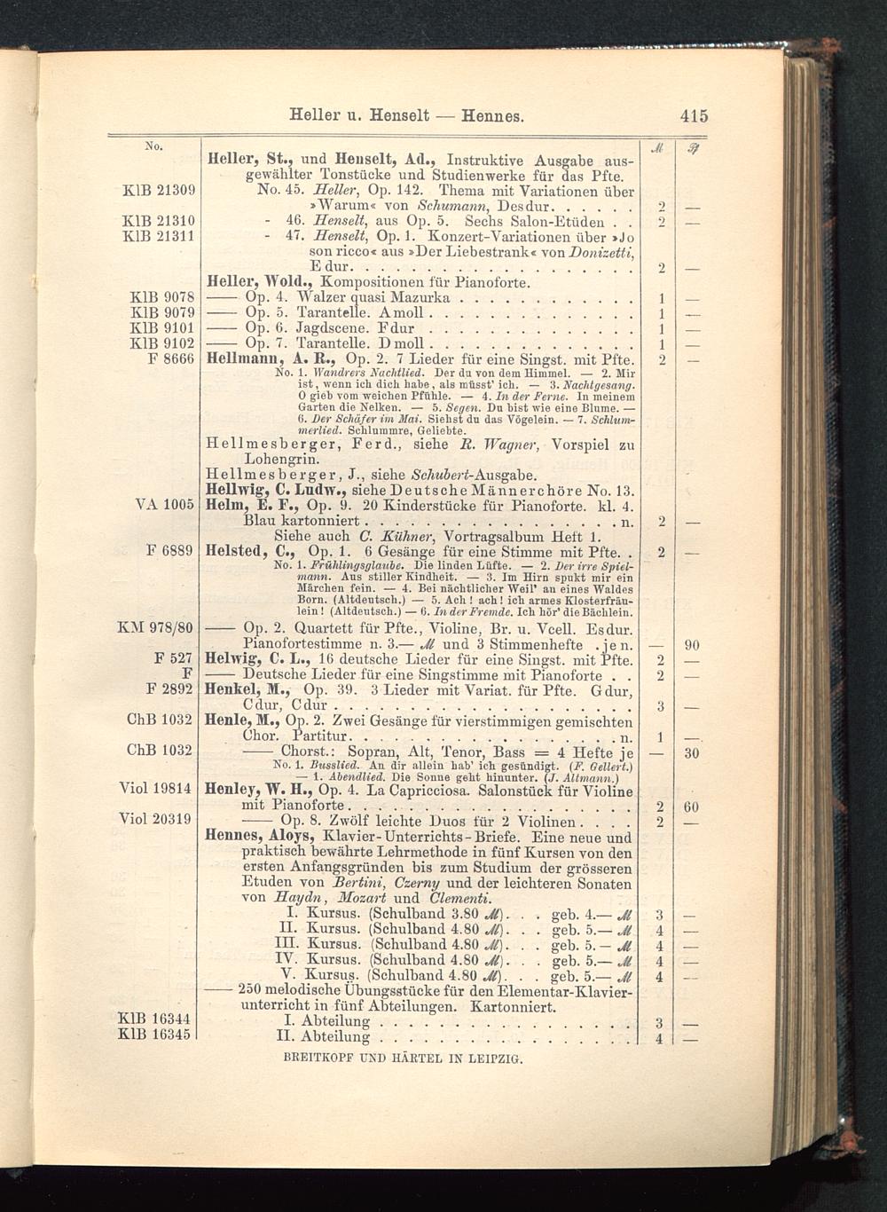 Verzeichnis des Musikalien-Verlages von Breitkopf & Härtel in Leipzig vollständig bis 1902
