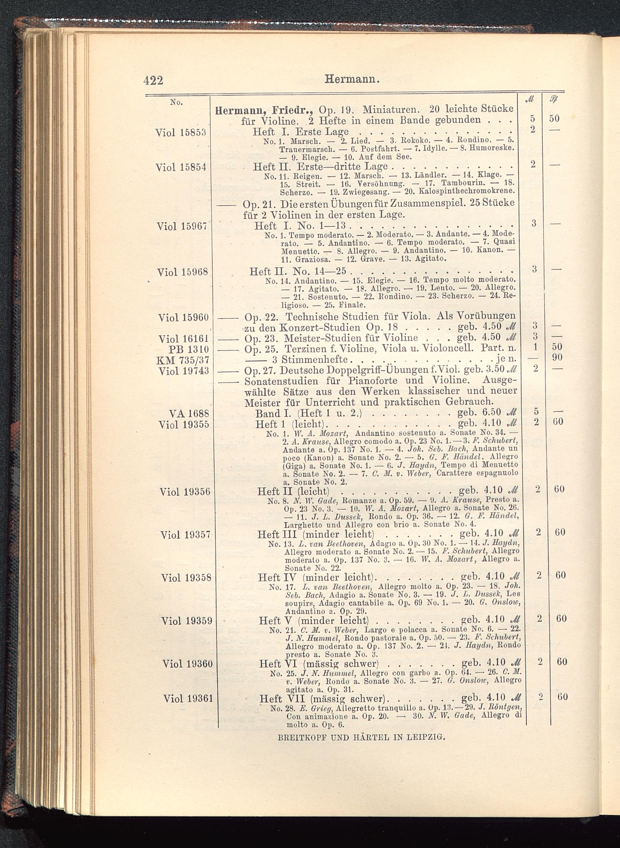 Verzeichnis des Musikalien-Verlages von Breitkopf & Härtel in Leipzig vollständig bis 1902