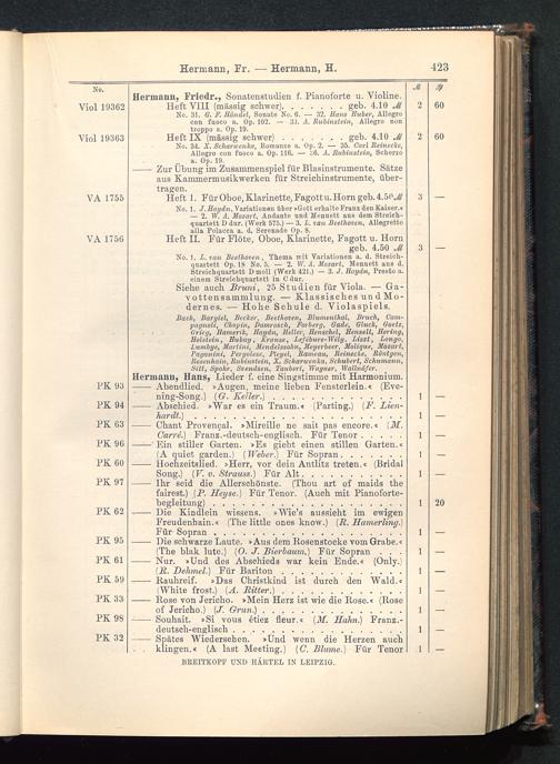 Verzeichnis des Musikalien-Verlages von Breitkopf & Härtel in Leipzig vollständig bis 1902