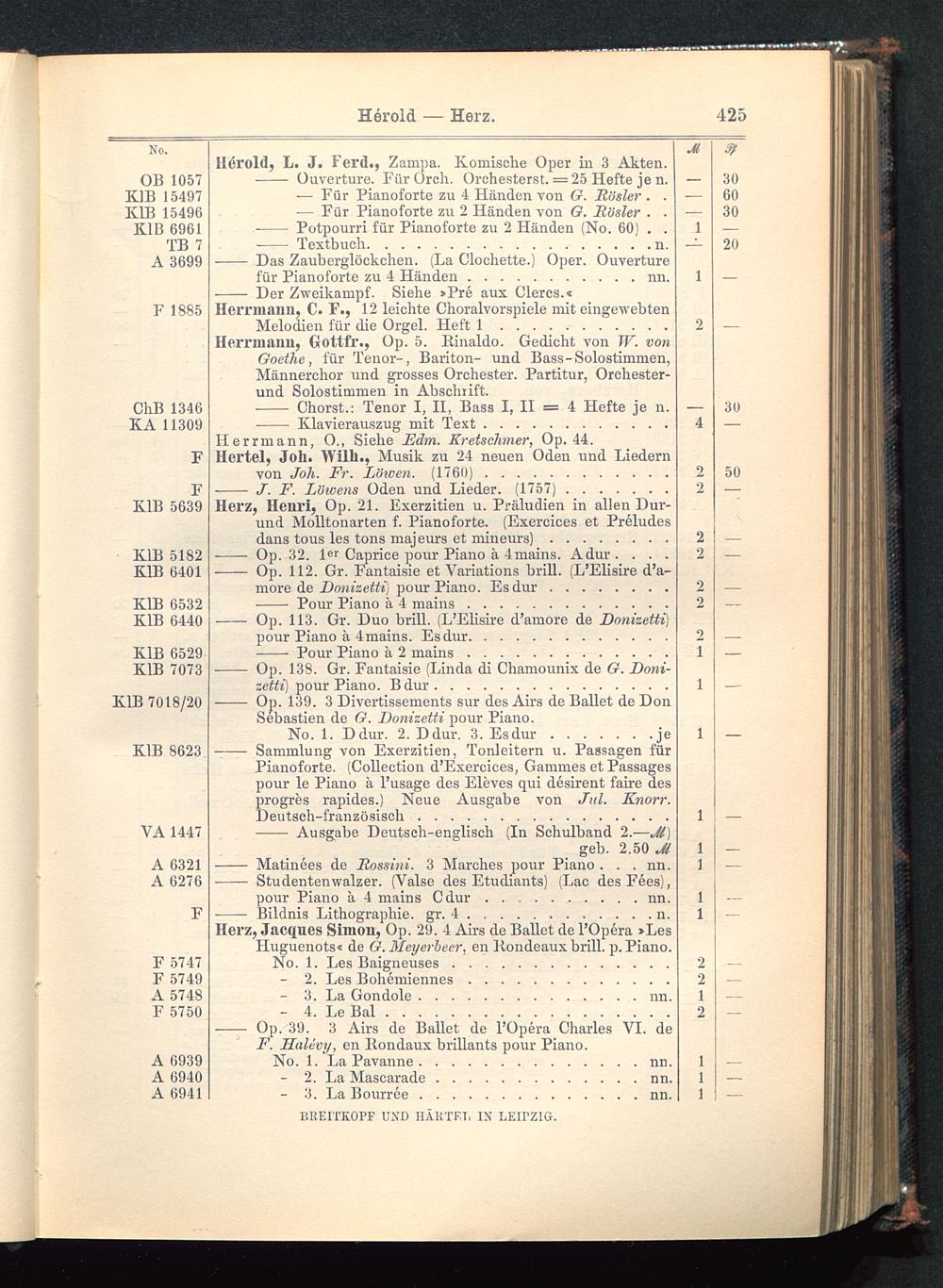 Verzeichnis des Musikalien-Verlages von Breitkopf & Härtel in Leipzig vollständig bis 1902