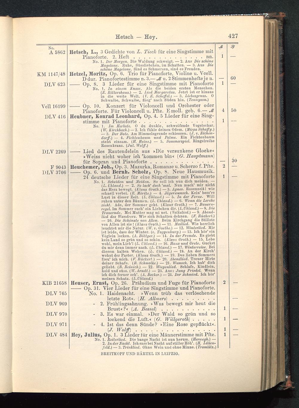 Verzeichnis des Musikalien-Verlages von Breitkopf & Härtel in Leipzig vollständig bis 1902
