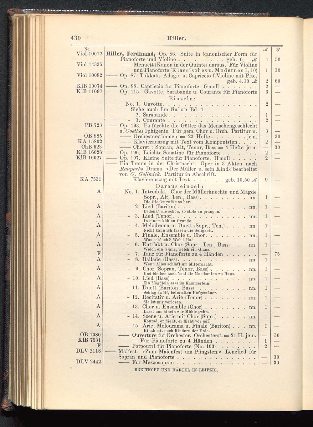 Verzeichnis des Musikalien-Verlages von Breitkopf & Härtel in Leipzig vollständig bis 1902