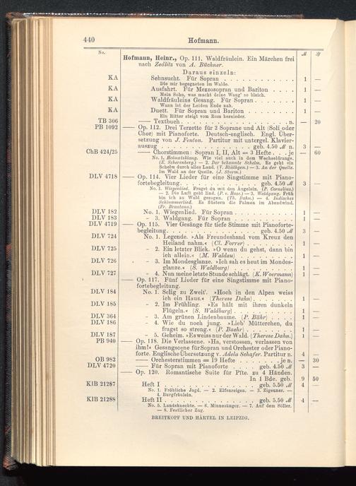 Verzeichnis des Musikalien-Verlages von Breitkopf & Härtel in Leipzig vollständig bis 1902