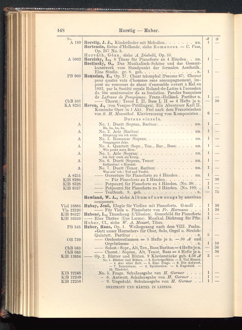 Verzeichnis des Musikalien-Verlages von Breitkopf & Härtel in Leipzig vollständig bis 1902