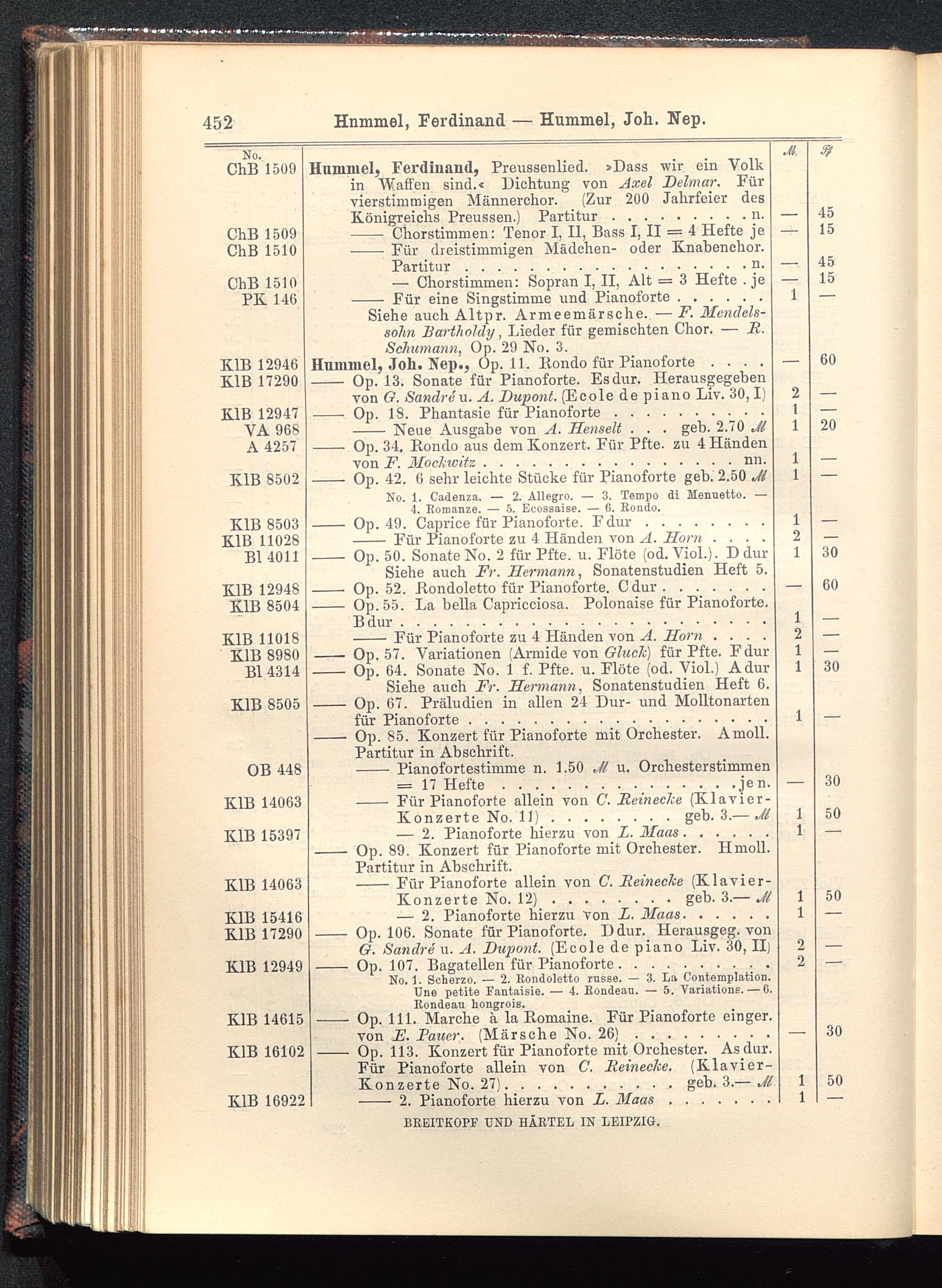 Verzeichnis des Musikalien-Verlages von Breitkopf & Härtel in Leipzig vollständig bis 1902