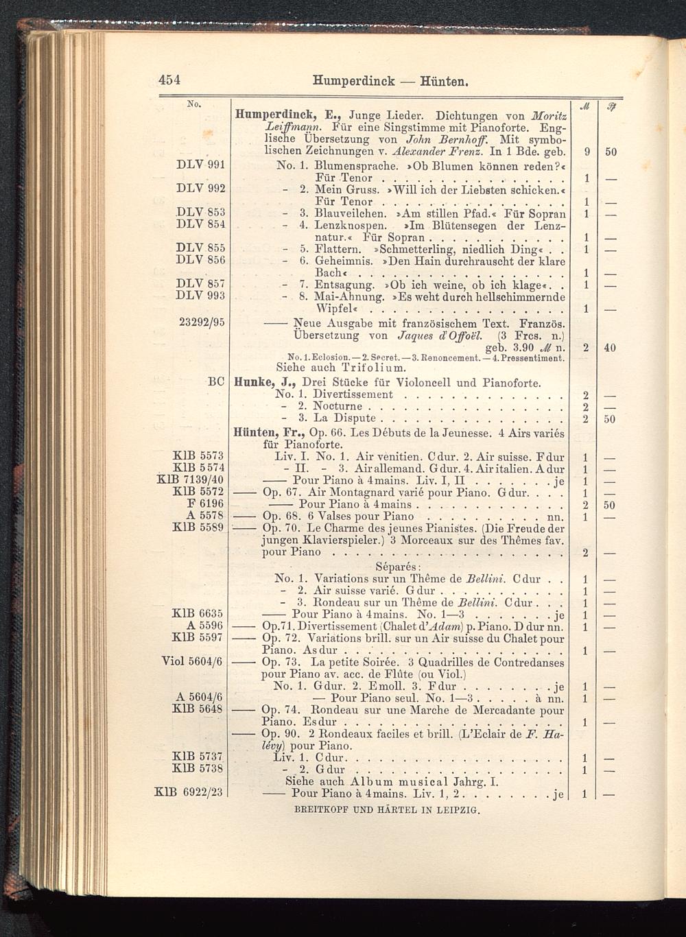 Verzeichnis des Musikalien-Verlages von Breitkopf & Härtel in Leipzig vollständig bis 1902