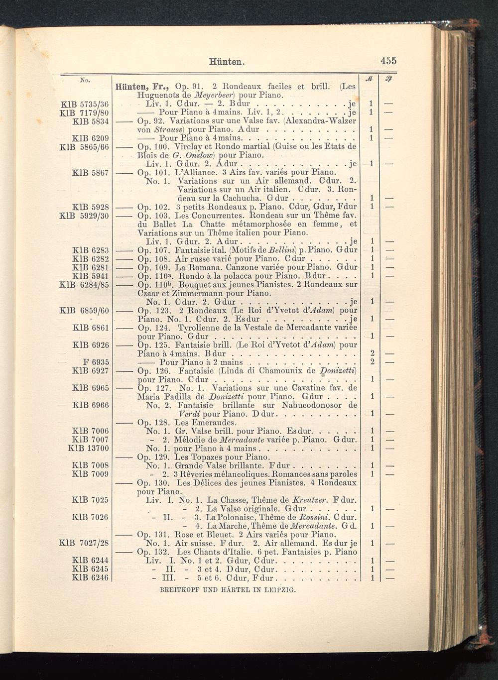 Verzeichnis des Musikalien-Verlages von Breitkopf & Härtel in Leipzig vollständig bis 1902