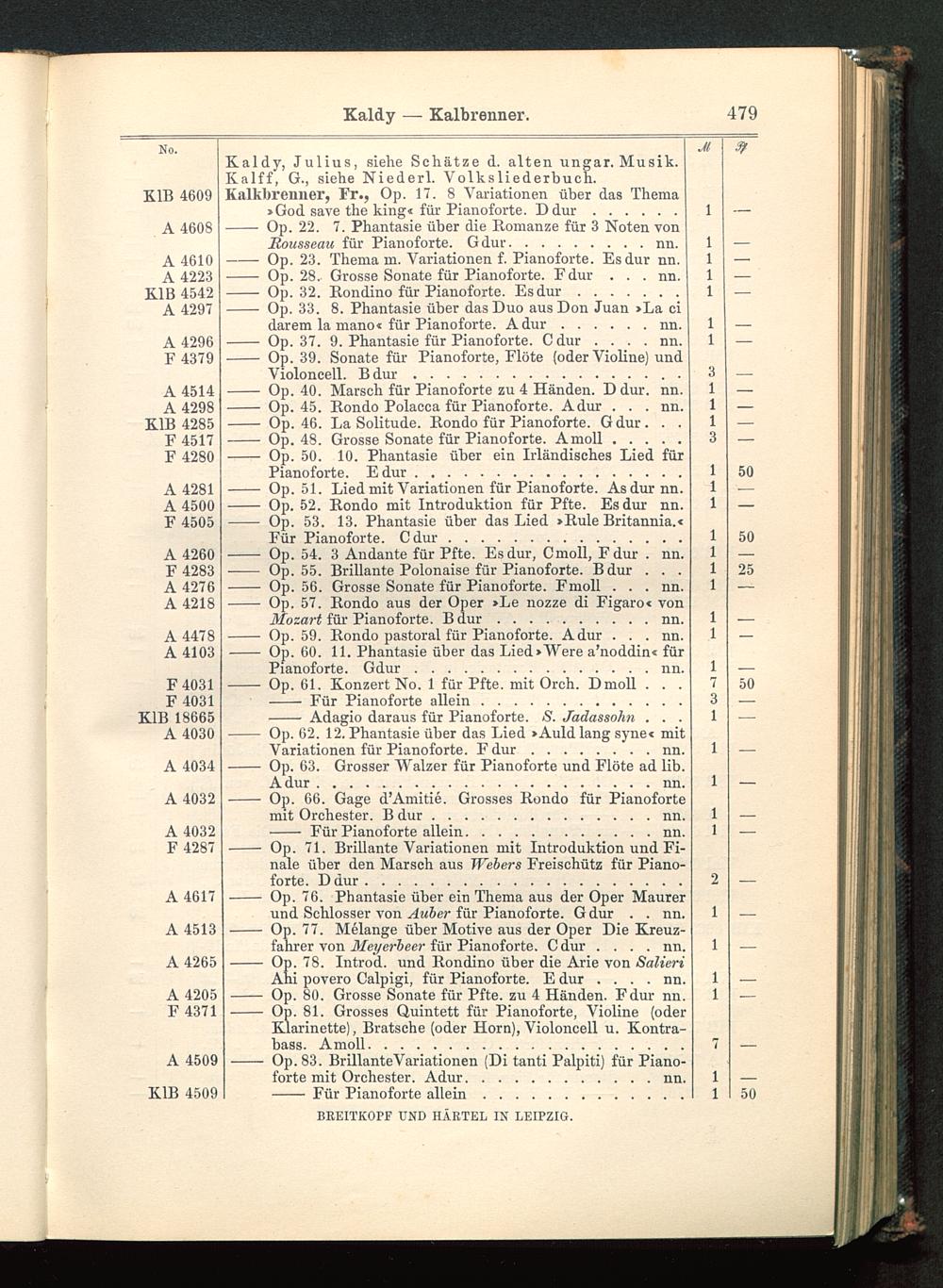 Verzeichnis des Musikalien-Verlages von Breitkopf & Härtel in Leipzig vollständig bis 1902