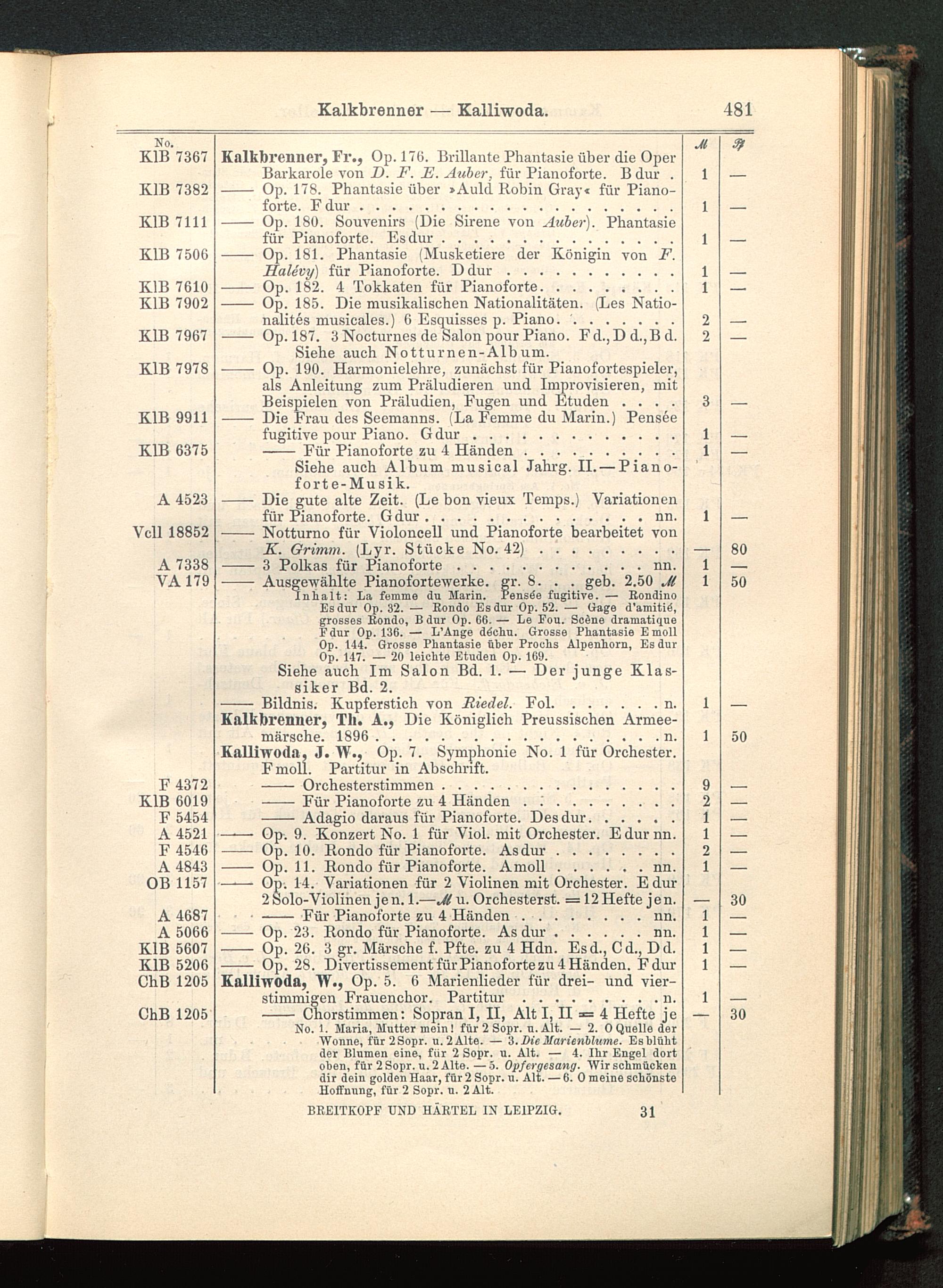 Verzeichnis des Musikalien-Verlages von Breitkopf & Härtel in Leipzig vollständig bis 1902