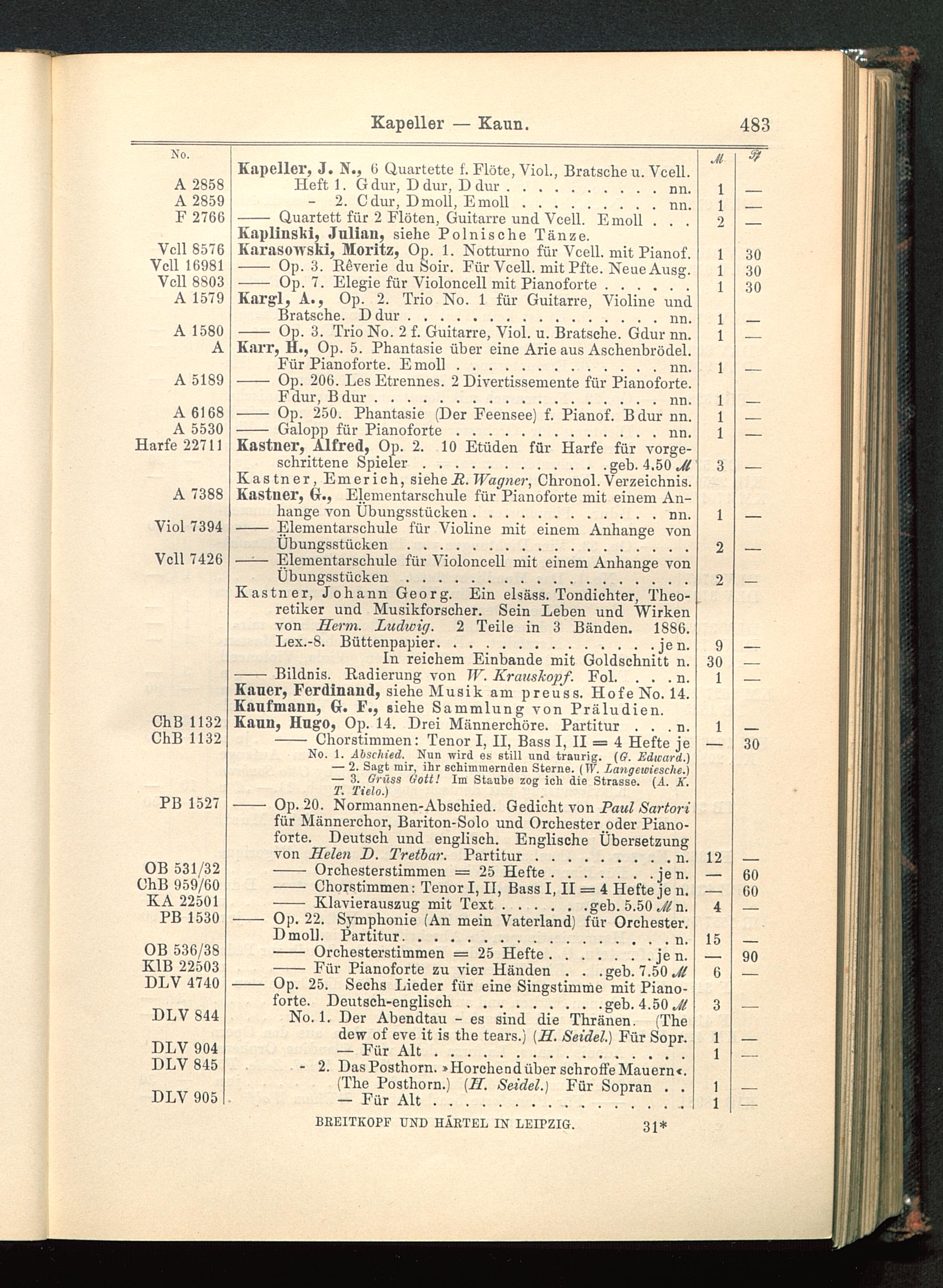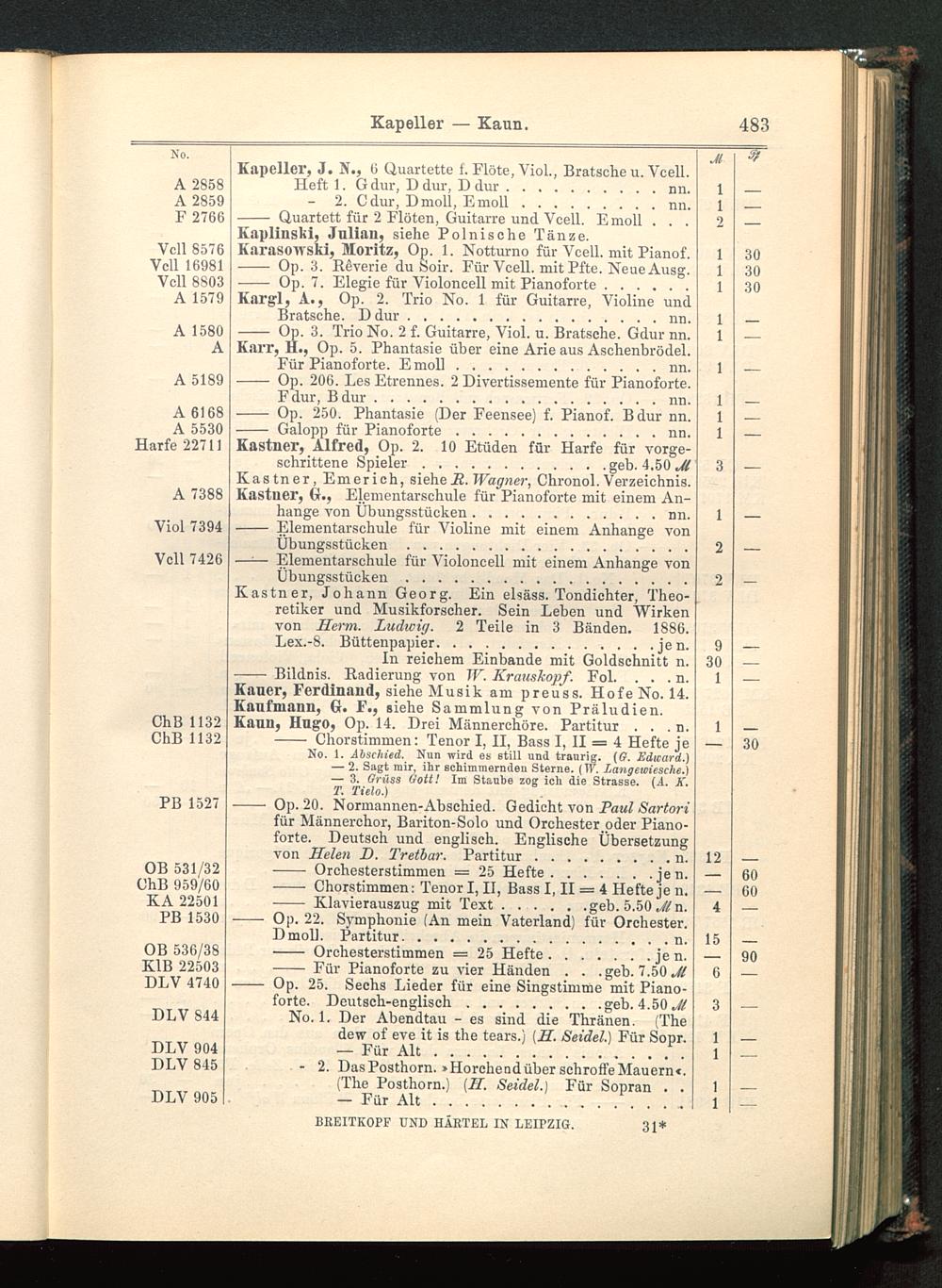 Verzeichnis des Musikalien-Verlages von Breitkopf & Härtel in Leipzig vollständig bis 1902
