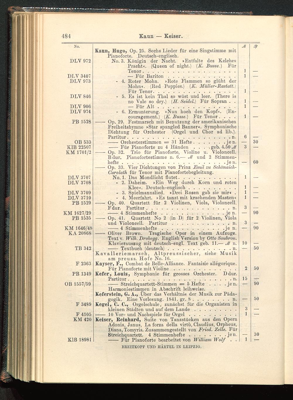 Verzeichnis des Musikalien-Verlages von Breitkopf & Härtel in Leipzig vollständig bis 1902