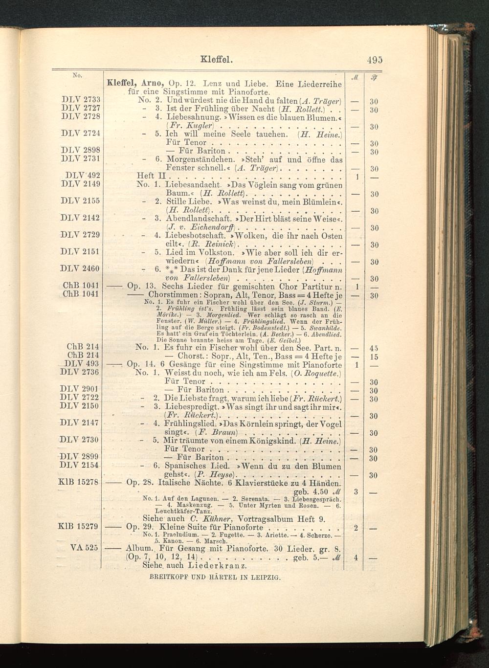 Verzeichnis des Musikalien-Verlages von Breitkopf & Härtel in Leipzig vollständig bis 1902