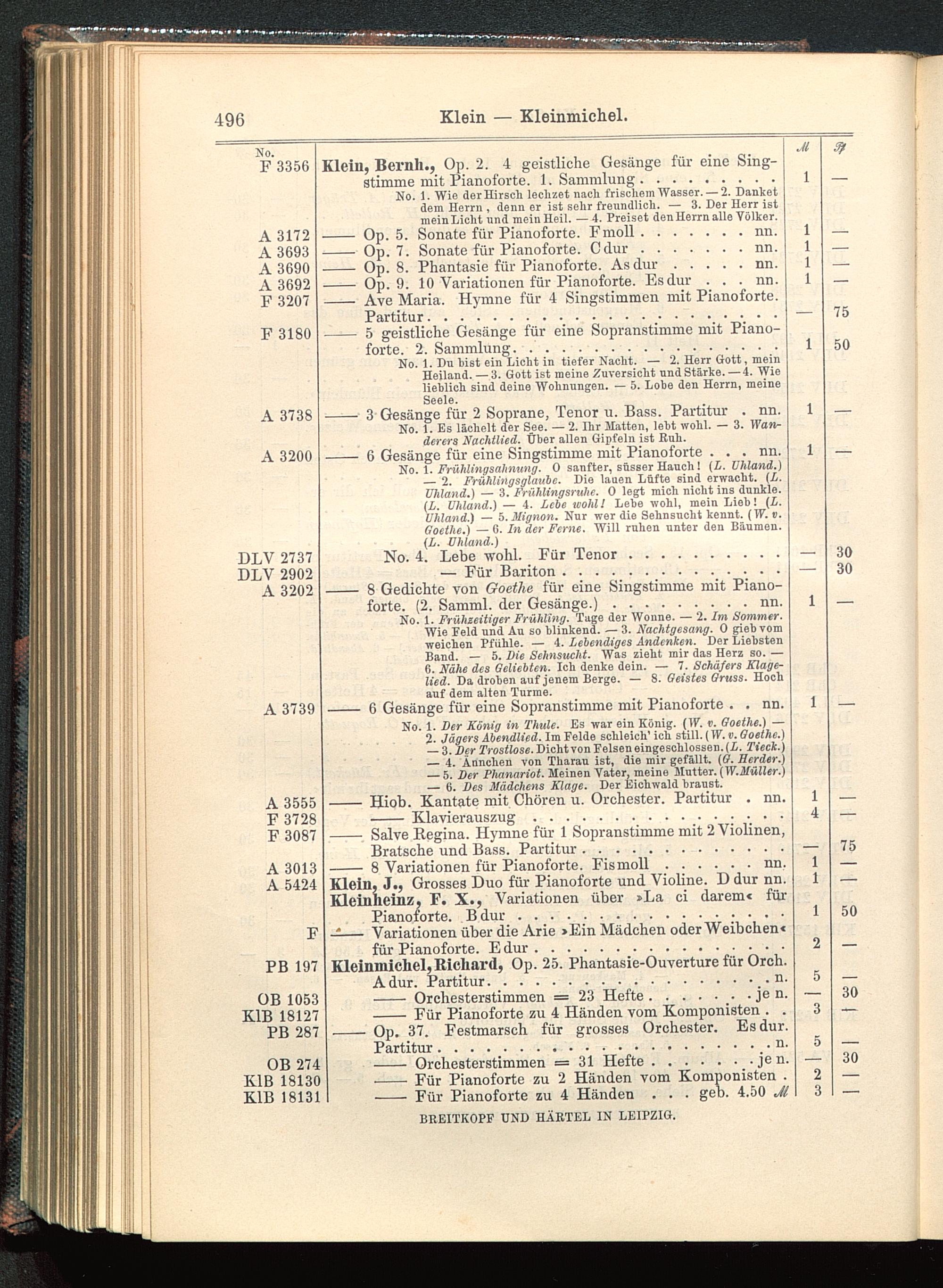 Verzeichnis des Musikalien-Verlages von Breitkopf & Härtel in Leipzig vollständig bis 1902